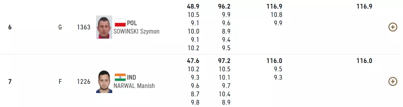 After the first two-shot elimination, Manish Narwal is ranked seventh. He is on the verge of an early exit here, with a deficit of 0.9. Can he survive?