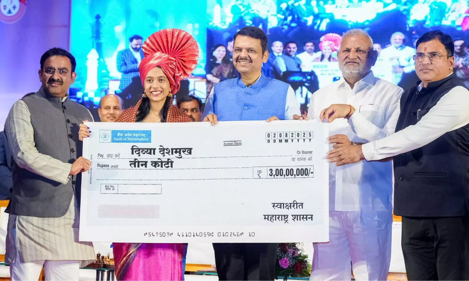 Divya Deshmukh honoured with Rs 3 crore after World Cup victory