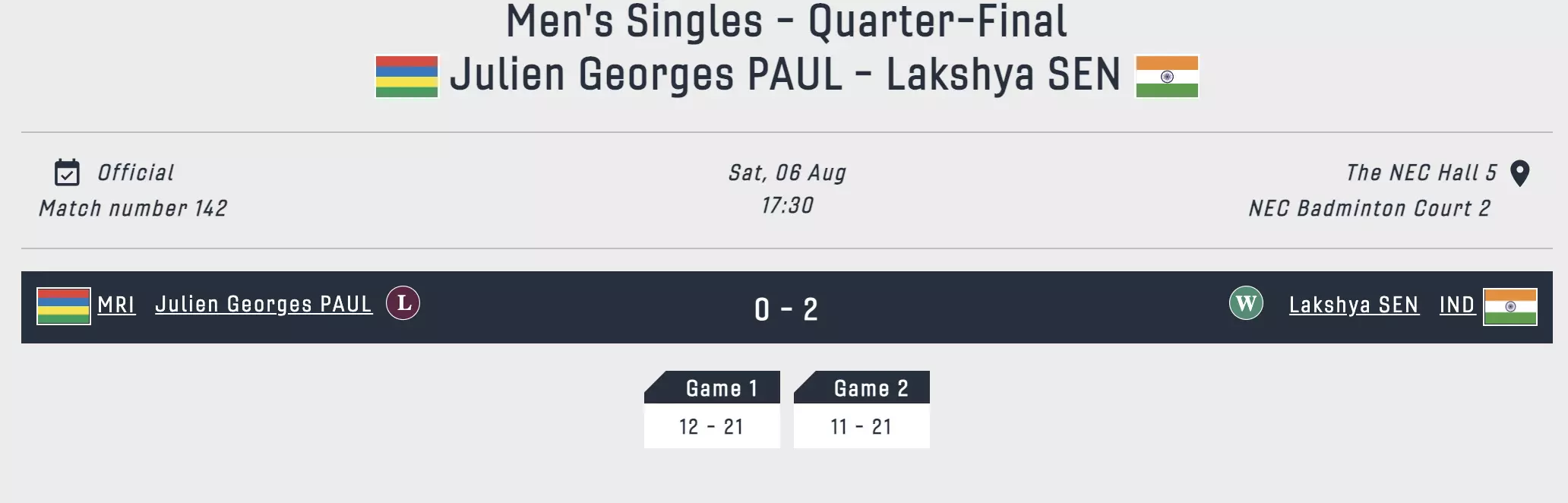 Lakshya Sen puts on a great show and is through to the semi-finals of the Birmingham Commonwealth Games 2022!