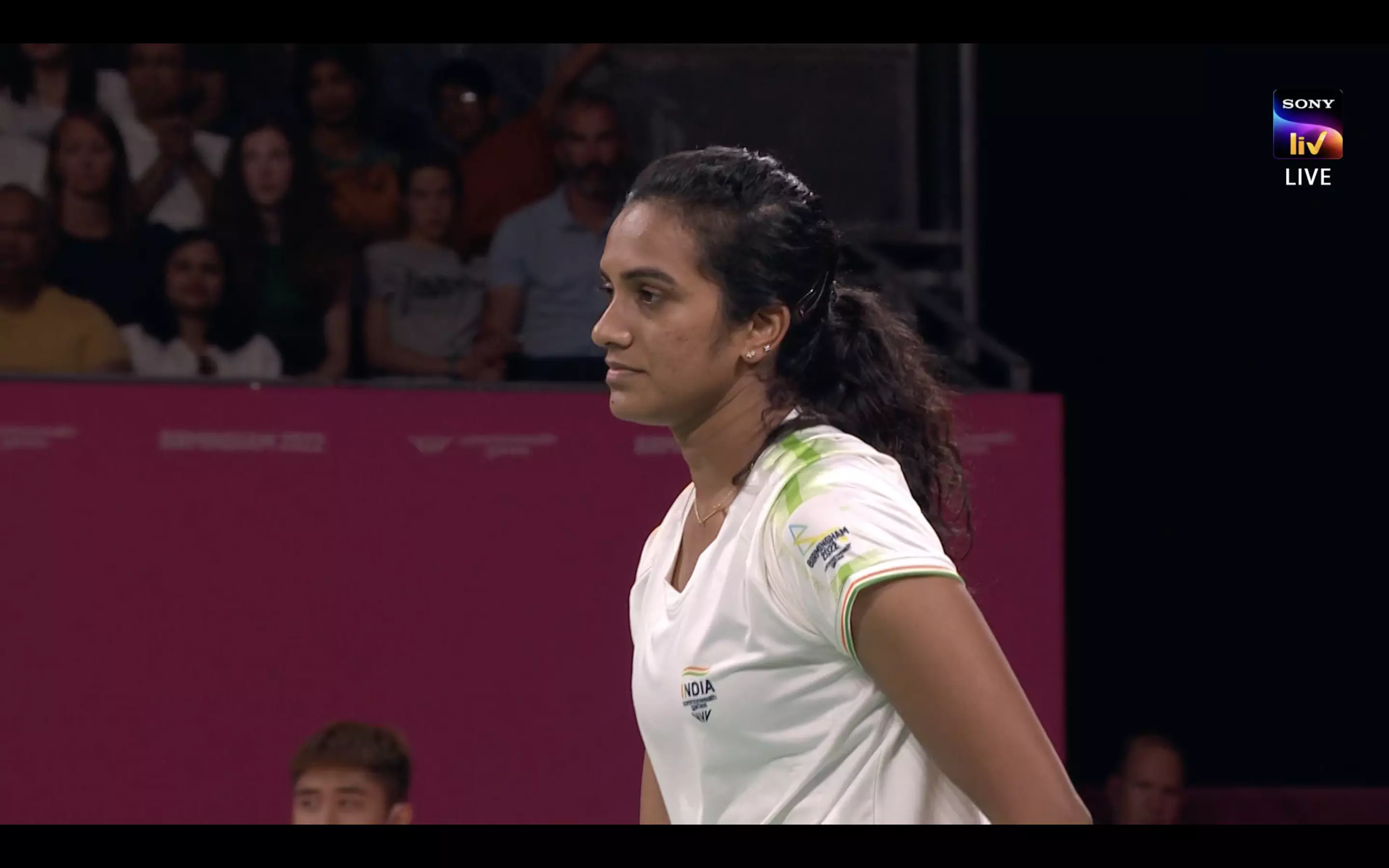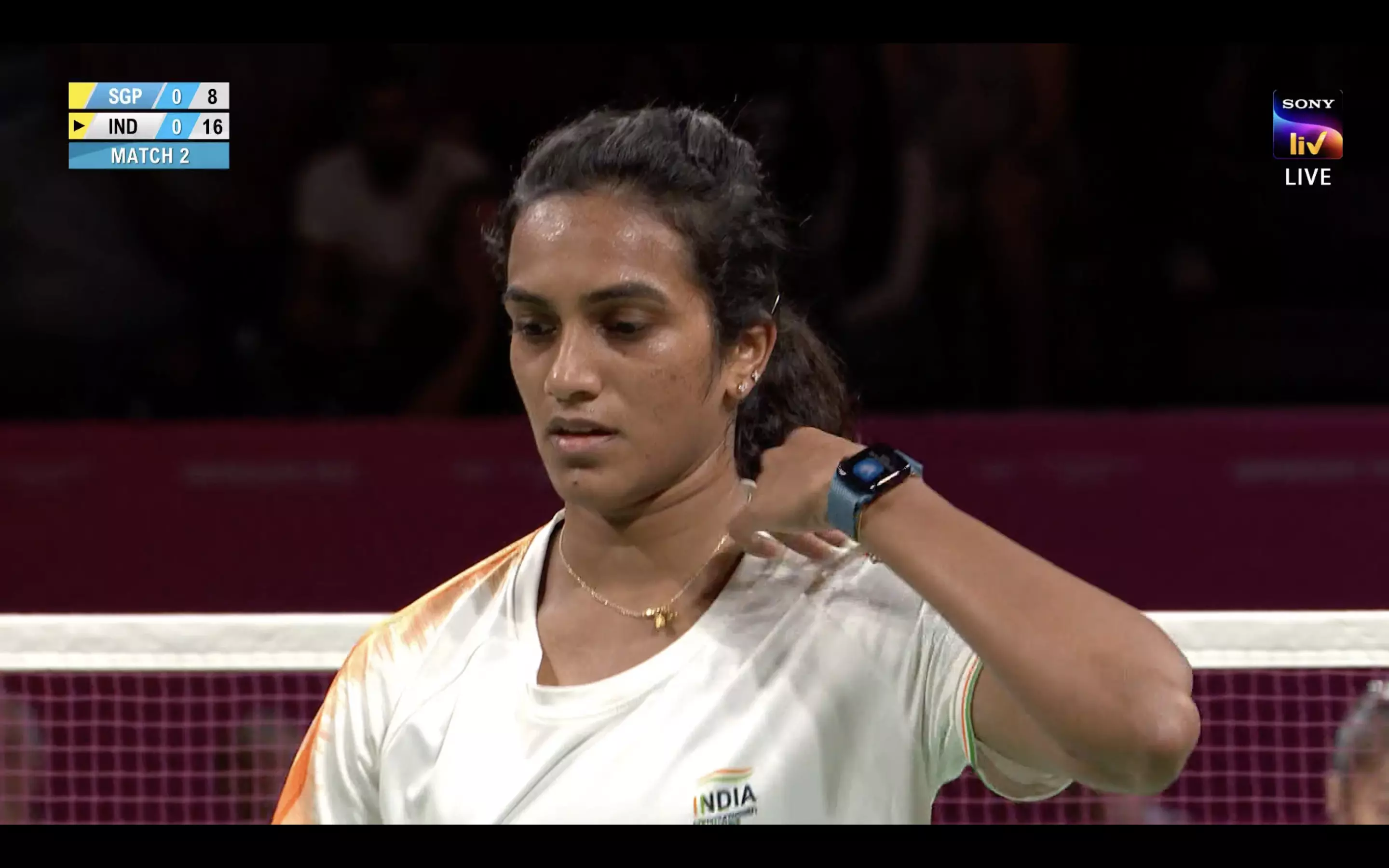 Sindhu's return finds the net and it is Sindhu who ends up conceding the point.