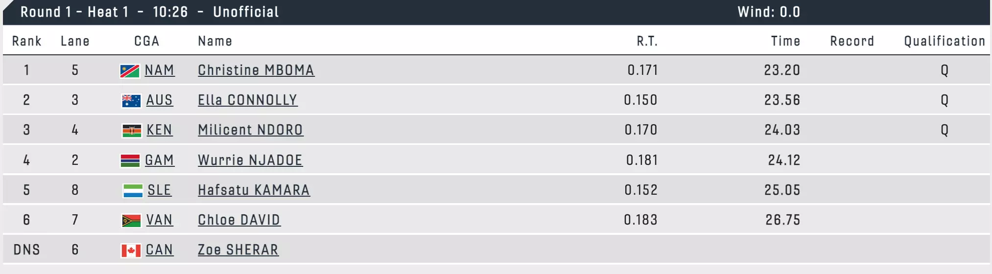 There have been 7 faster times than Hima's across the other heats. Her semifinal will be tomorrow.