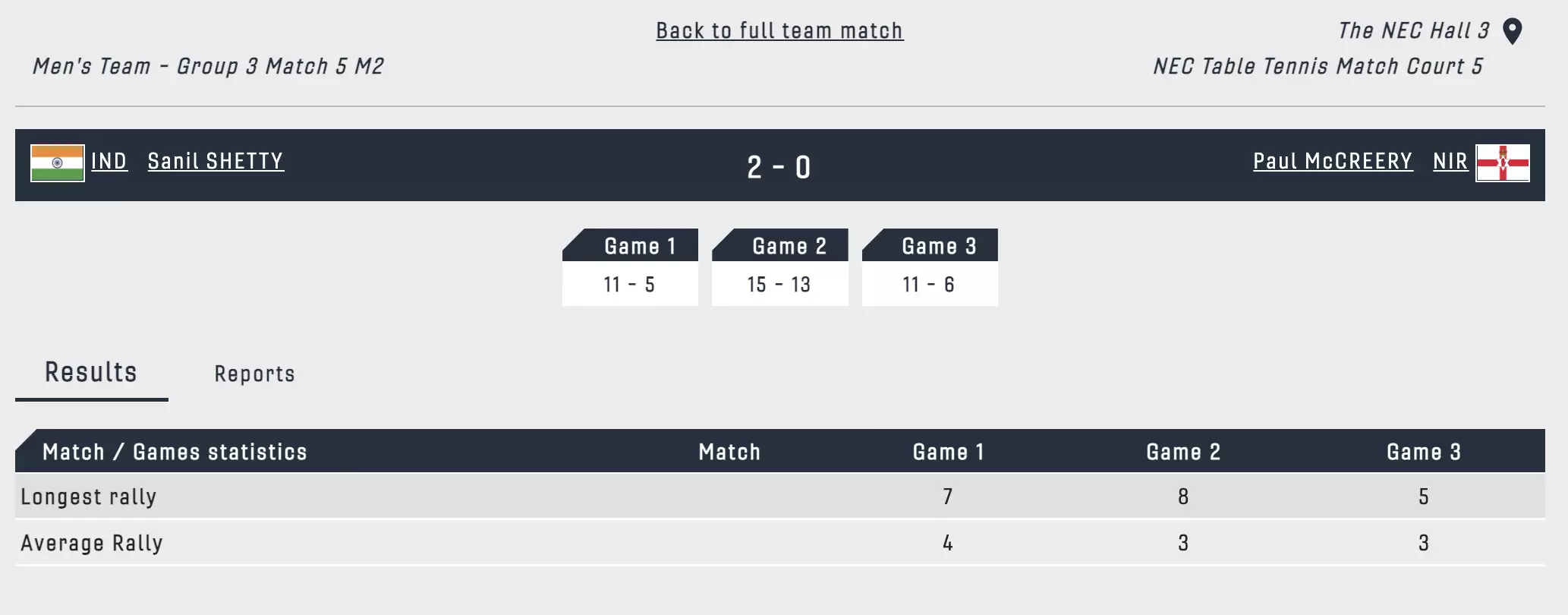 Sanil Shetty gets the second match win for India and India leads 2-0 against Northern Ireland!