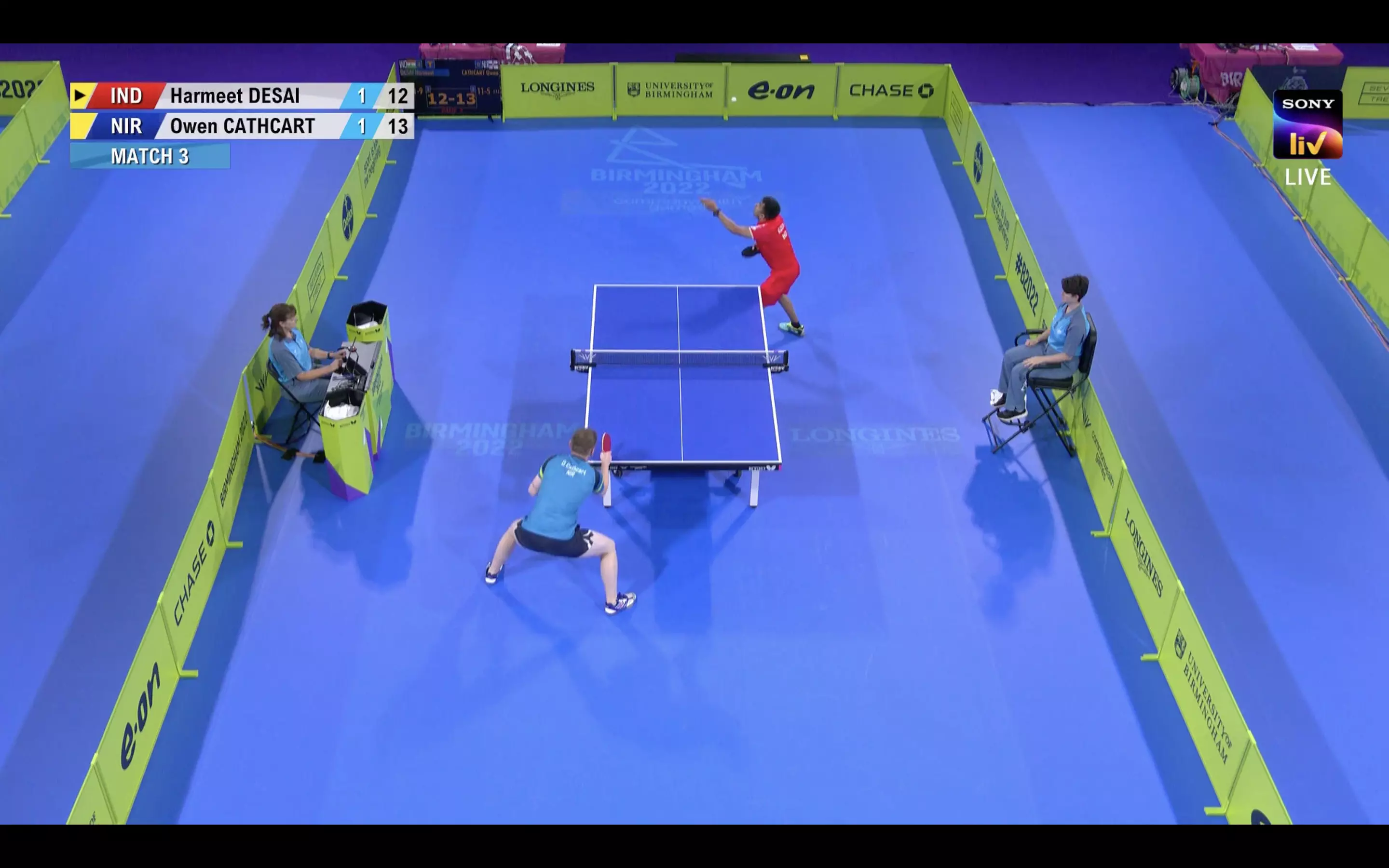 The Northern Ireland player puts a lot of pressure on Harmeet Desai and the nerves show as he ends up giving the third game, 12-14