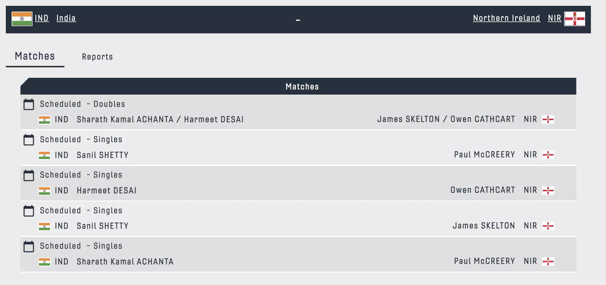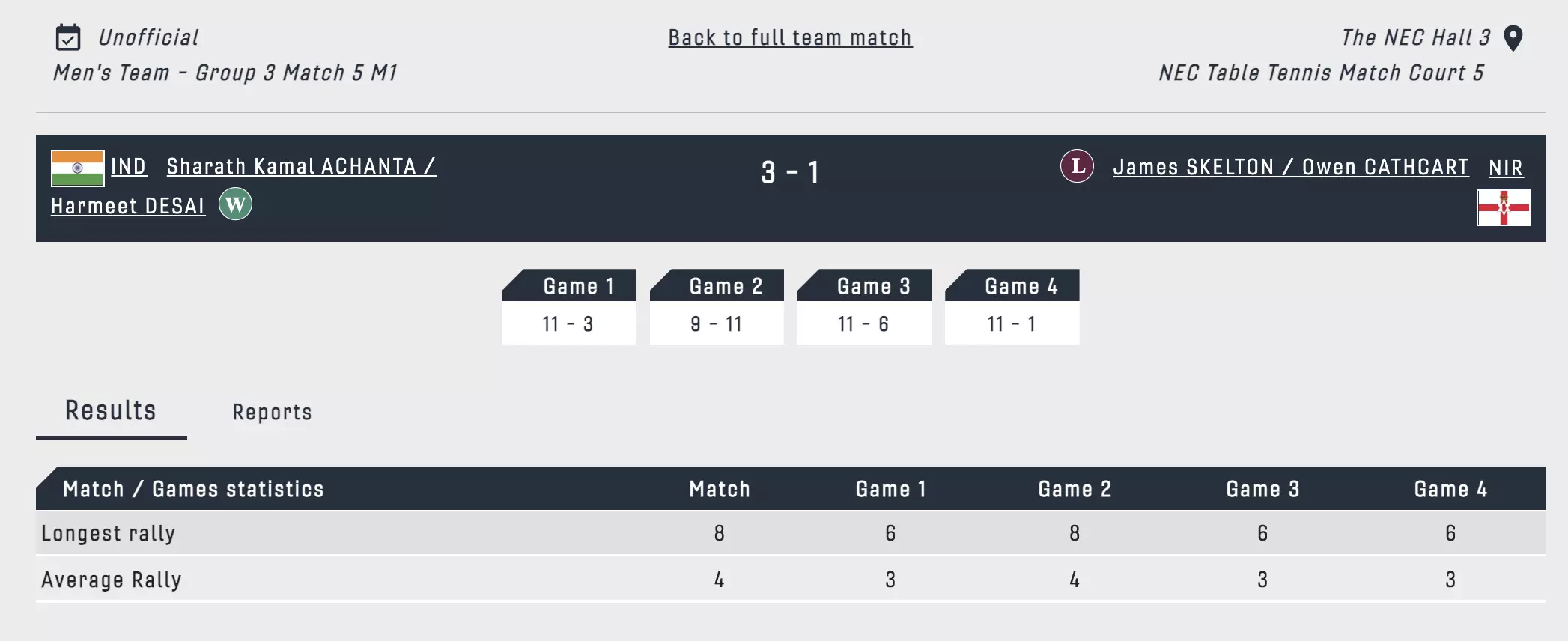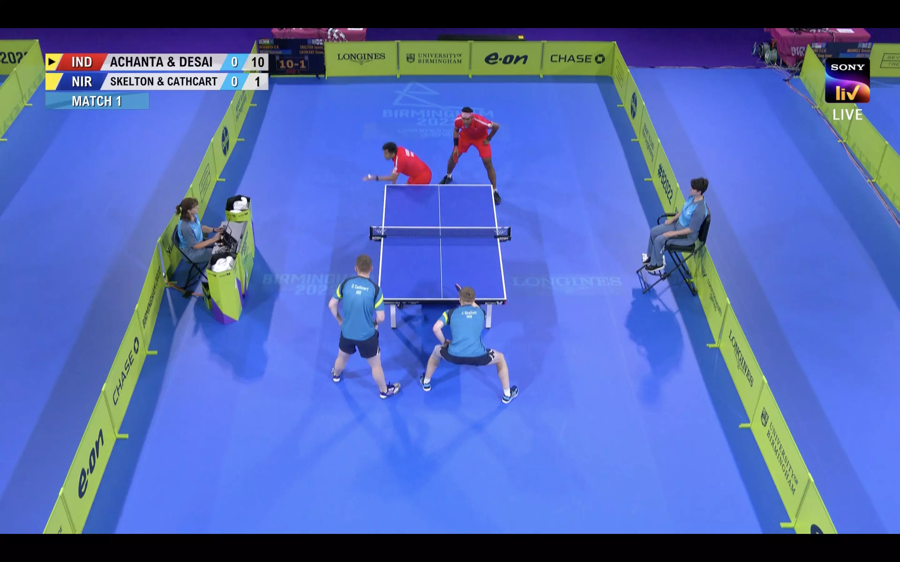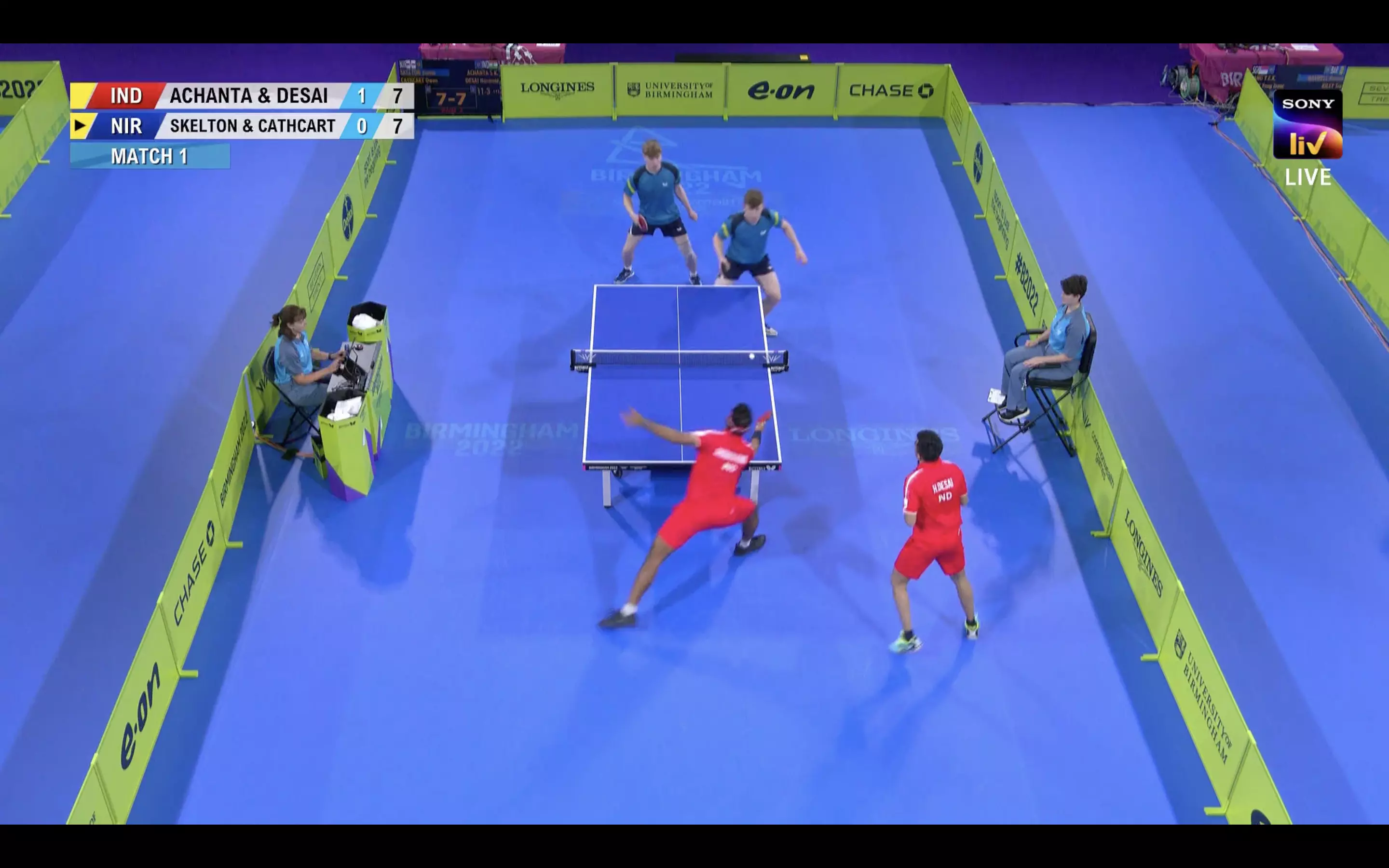 Sharath Kamal and Harmeet Desai fluster the opponents and lead 10-1 in the opening game against Northern Ireland