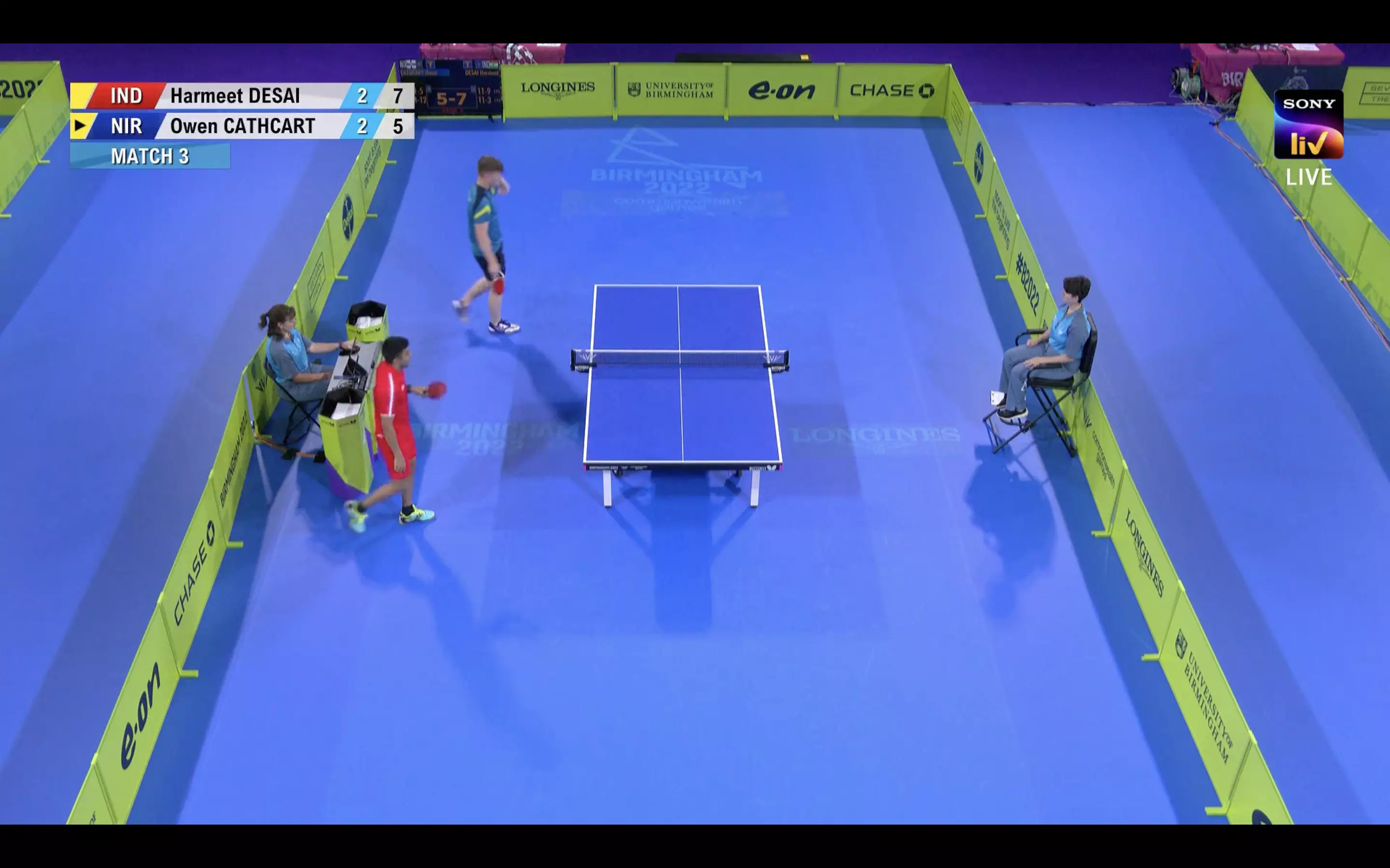Harmeet Desai rips his forehands and leads 7-5 in the decider!