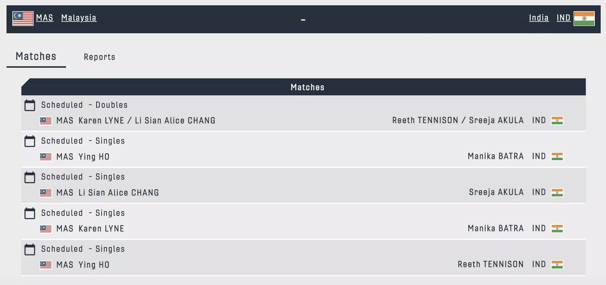 This will be a tricky match for India. Sreeja and Reeth Tennison are in action against the Malaysian pair of Karen LYNE / Li Sian Alice CHANG.