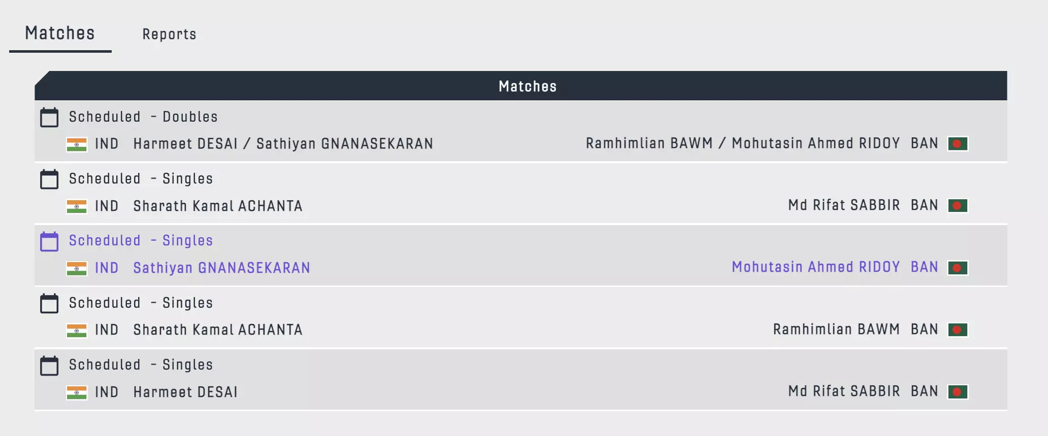 Up against neighbours Bangladesh, veteran Indian paddlers Sathiyan Gnanasekaran and Harmeet Desai will join forces once more to take on the Bangladeshi pair of Ramhimlian Bawm/ Mohutasin Ahmed Ridoy in the first match of the quarterfinal tie!