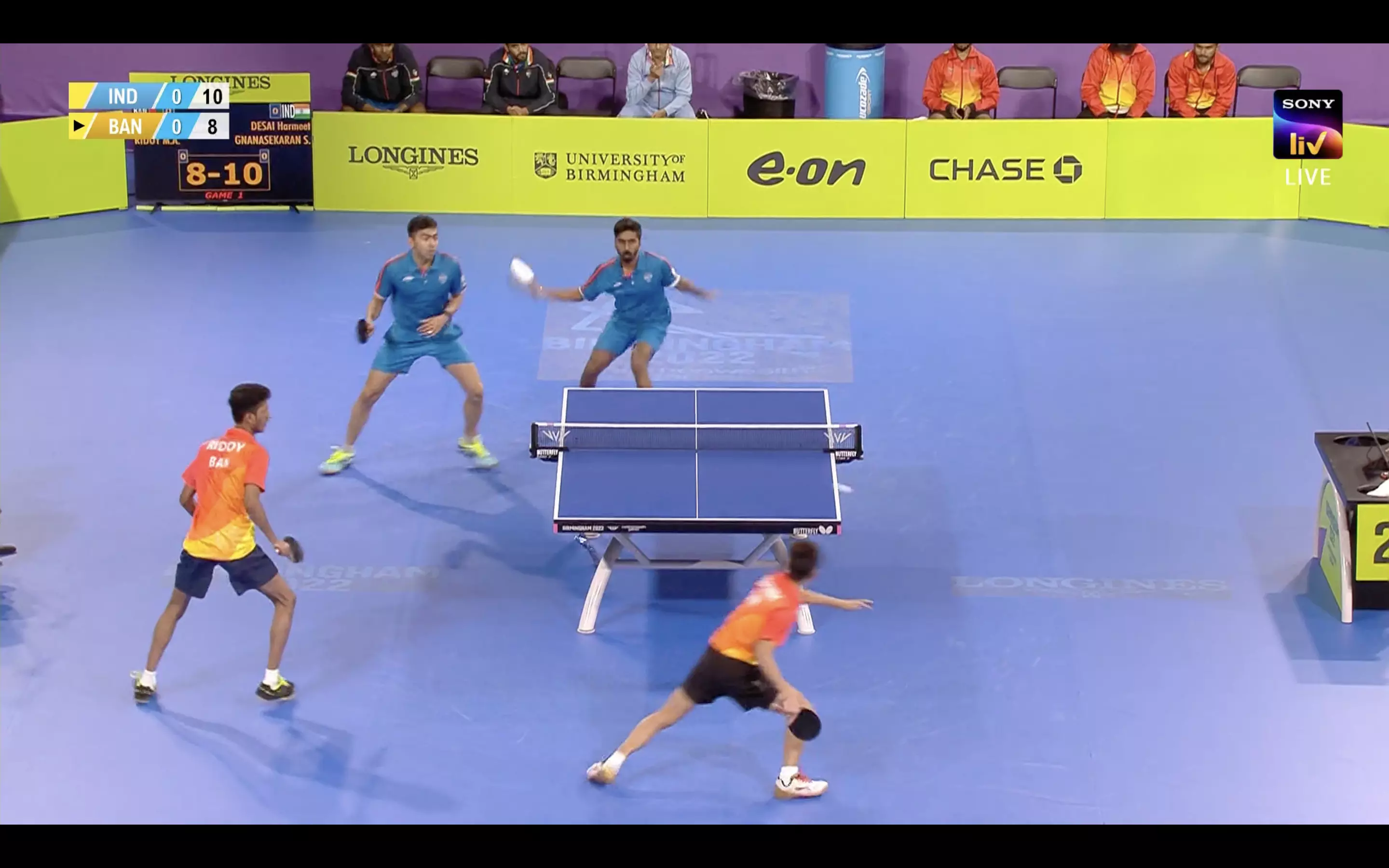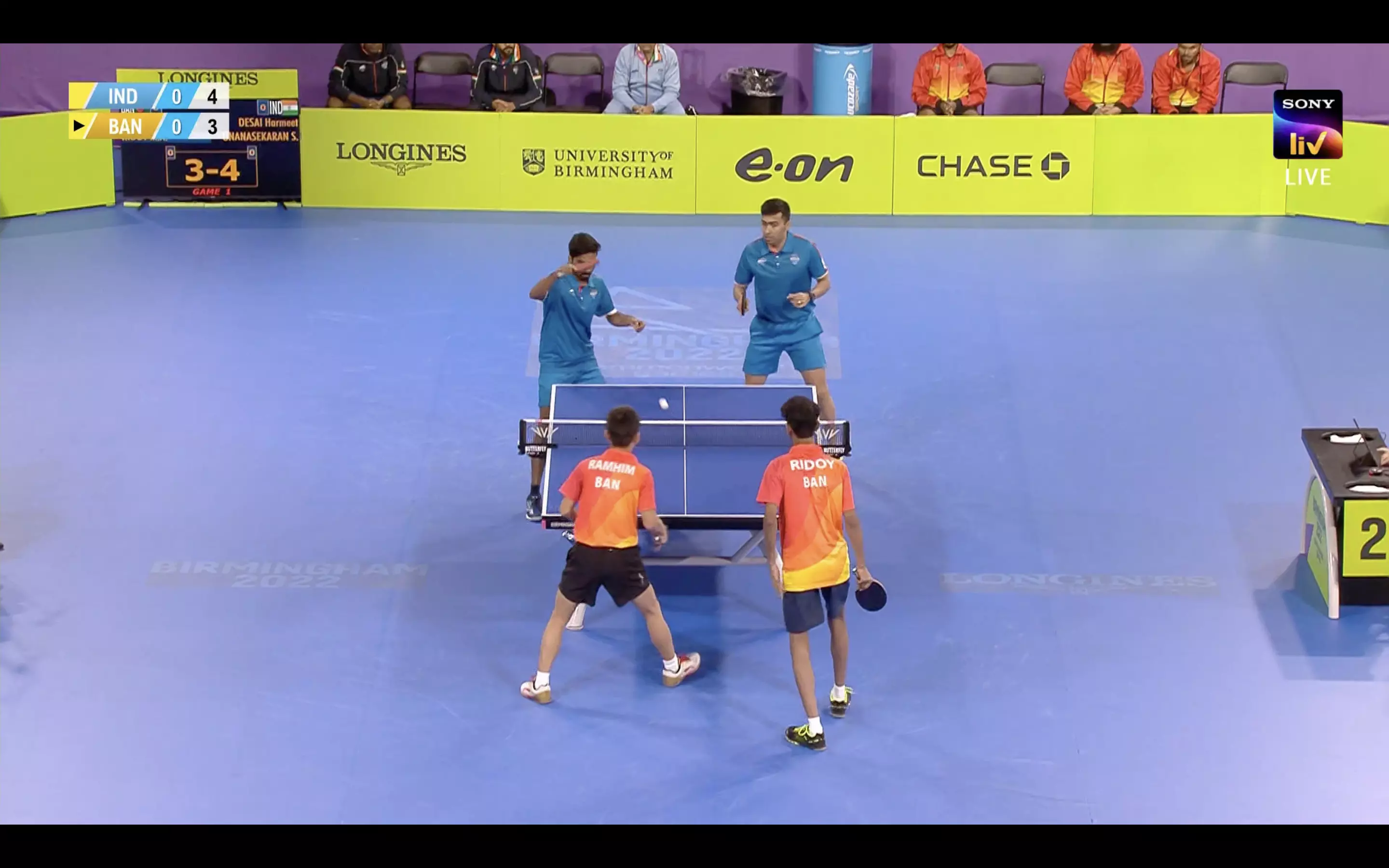 Sathiyan and Harmeet get off to a slow start here as the Bangladeshi side also makes a good start. The Indian pair leads 4-3.