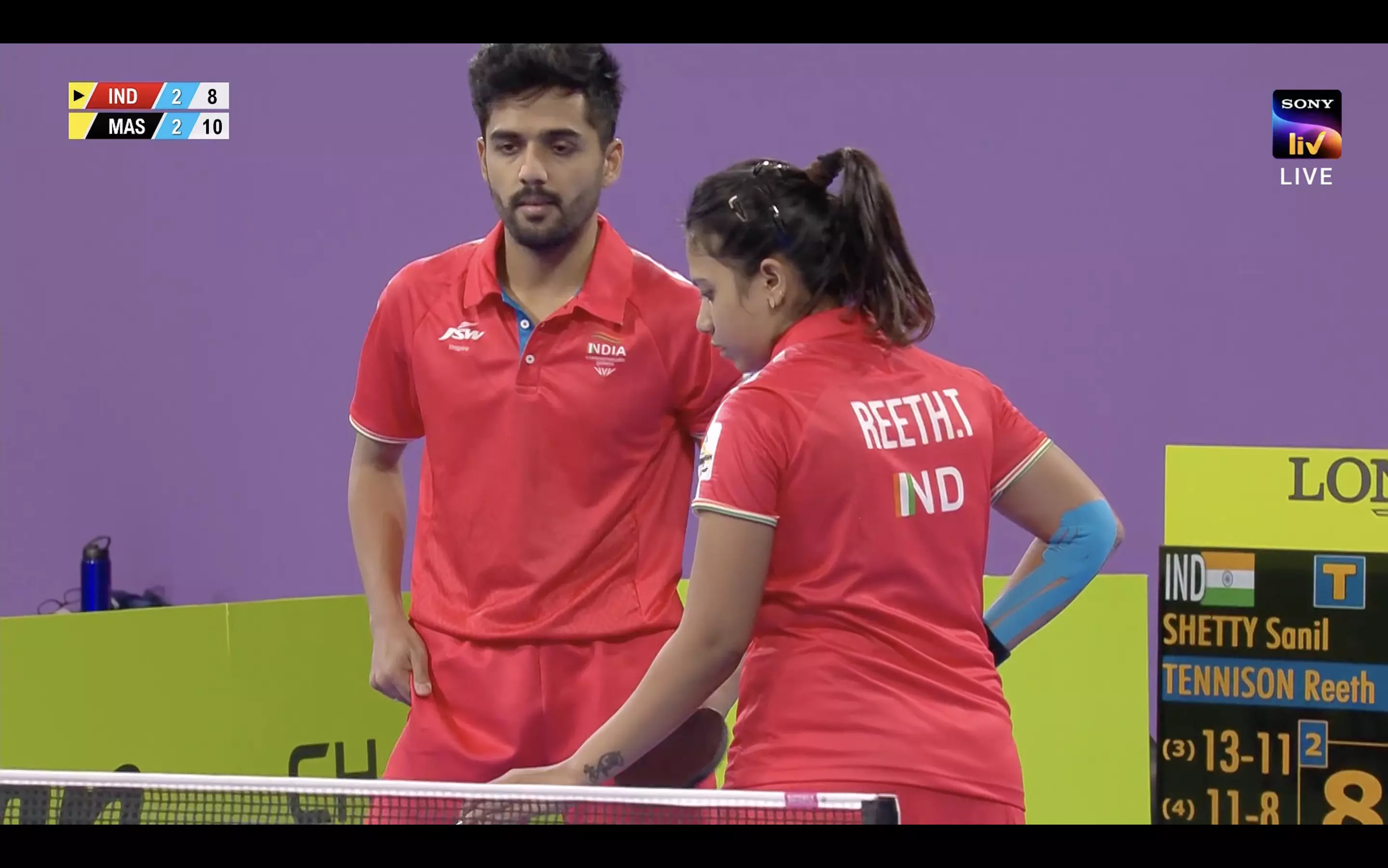 And it's an early upset for India as the husband-wife pair of Sanil Shetty and Reeth Tennison lose to Malaysia, 3-2 (6-11, 10-12, 13-11, 11-8, 8-11) and crashes out of the Mixed Doubles.