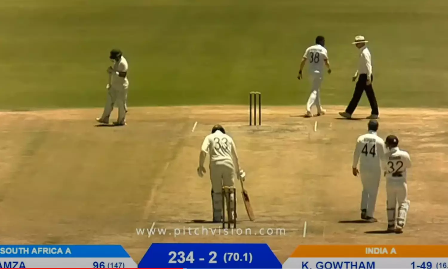 India A vs South Africa A 3rd unofficial Test Day 4: Hanuma Vihari, Ishan Kishan and Krishnappa Gowtham of India A in action (Screenshot)