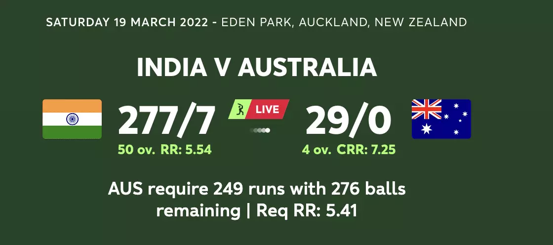 Welcome to the live blog of The Bridge from the India vs Australia Women's Cricket World Cup match!