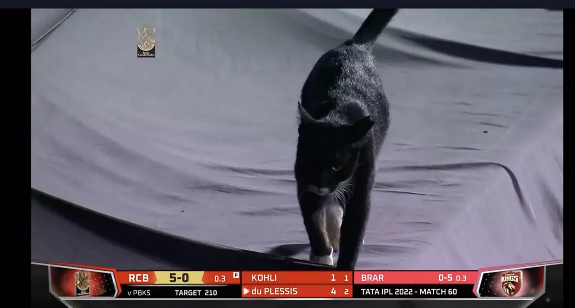 The 60th IPL 2022 match between RCB and Punjab Kings was exciting with batsmen from both sides scoring large totals. What stood out during one part of the match was a debut appearance of a black cat. In a perfectly timed move and maybe a twist of fate, the cat appeared to cross the path of play while Faf du Plessis was on strike. It resulted in play being halted with everyone turning to have a look. Here are some of the best reactions to the incident.