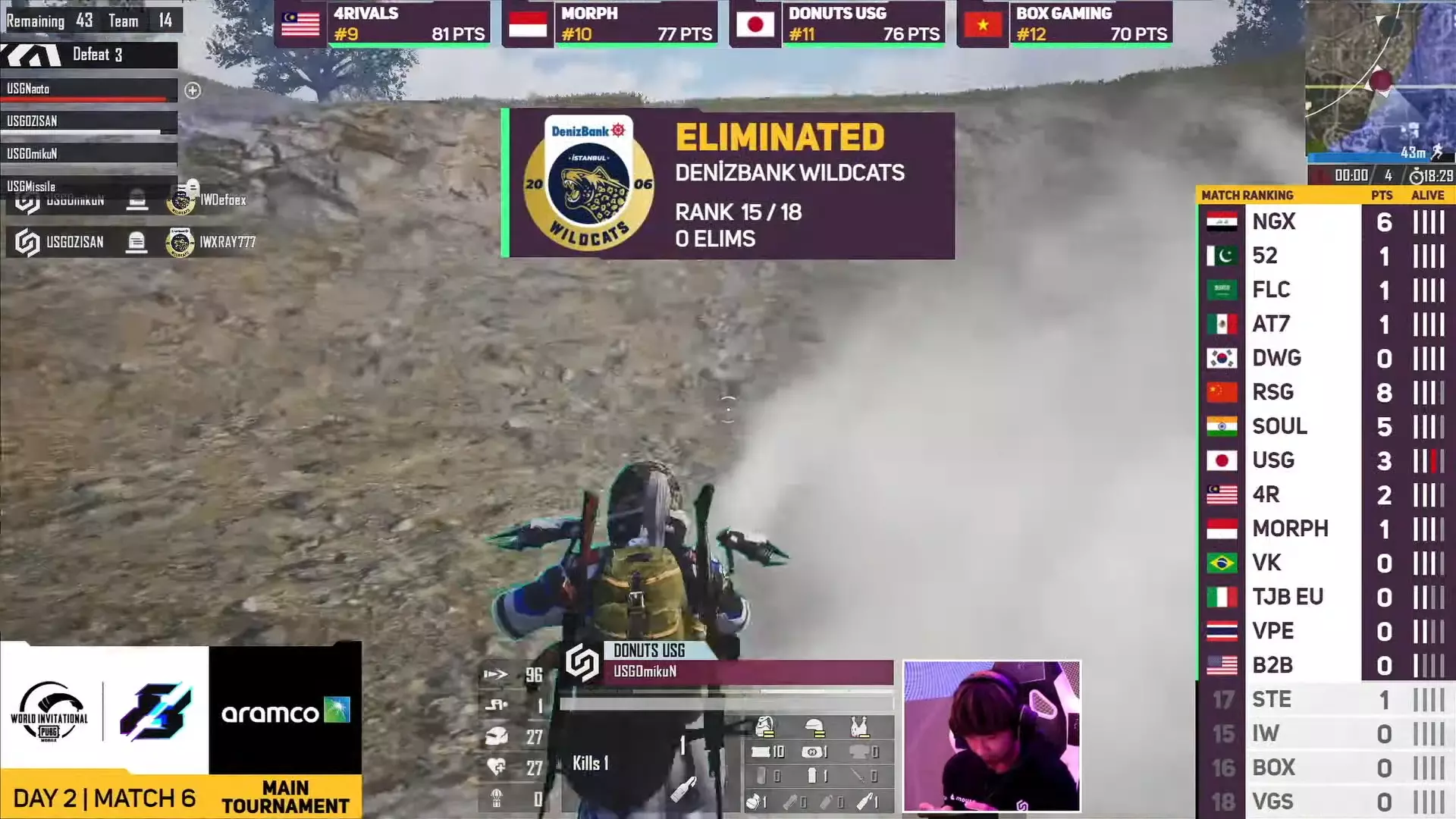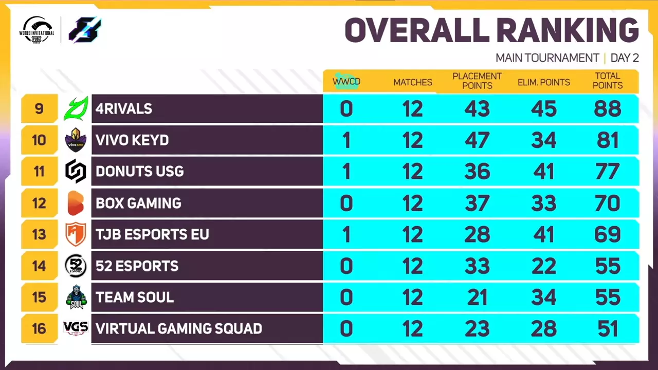 These include two 5th ranked finishes out of the six matches played on Day 1 of the PMWI. With this, Team Soul ends the day with a 11th place position on the Overall ranking table. They could muster up 26 points, 13 in elimination and 13 in placement.