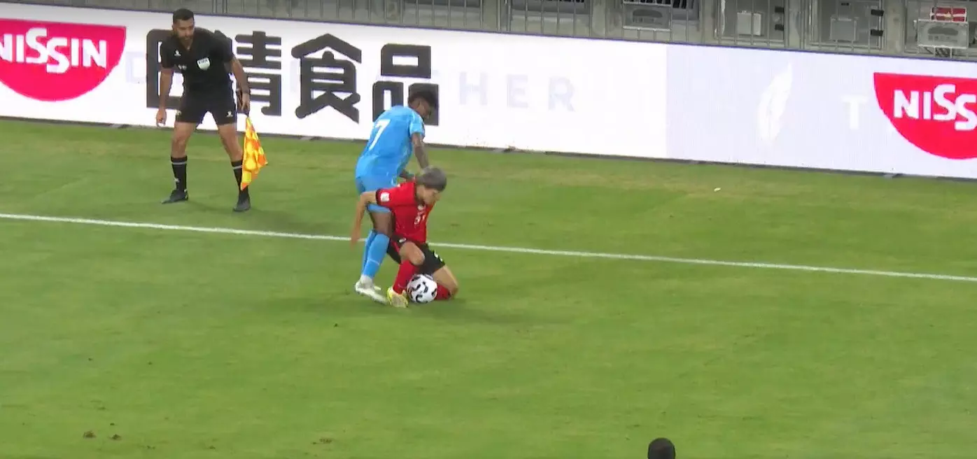 Loud booos in the stadium as the referee points to an Indian freekick.
