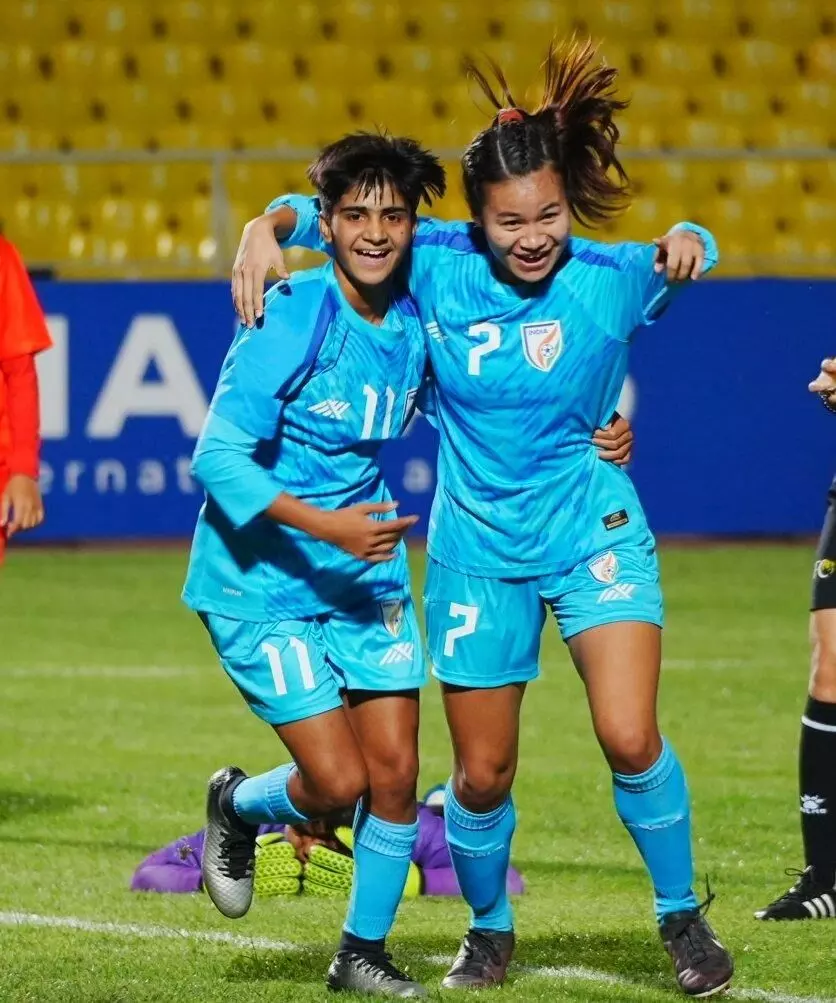 The young tigresses celebrating the goal (image via Indian Football IG )