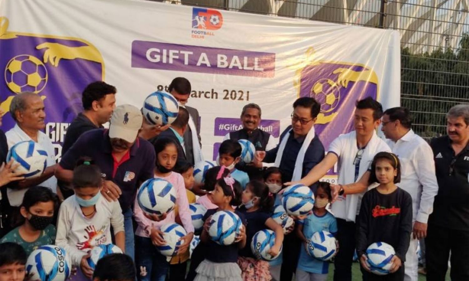 The governing body for football in the capital, Football Delhi on Monday launched the "Gift A Ball" campaign to encourage more and more young underprivileged girls to take up the sport. In an event organised at the Jawaharlal Nehru stadium in New Delhi on the occasion of International Women's Day, Sports Minister Kiren Rijiju flagged off the initiative with former captain Bhaichung Bhutia, members of the federation and young female players in attendance.