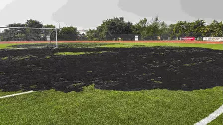 The fire itself is expected to have originated from firecrackers and talks are currently being held with the company that installed the artificial turf to determine the possible cause for the fire.