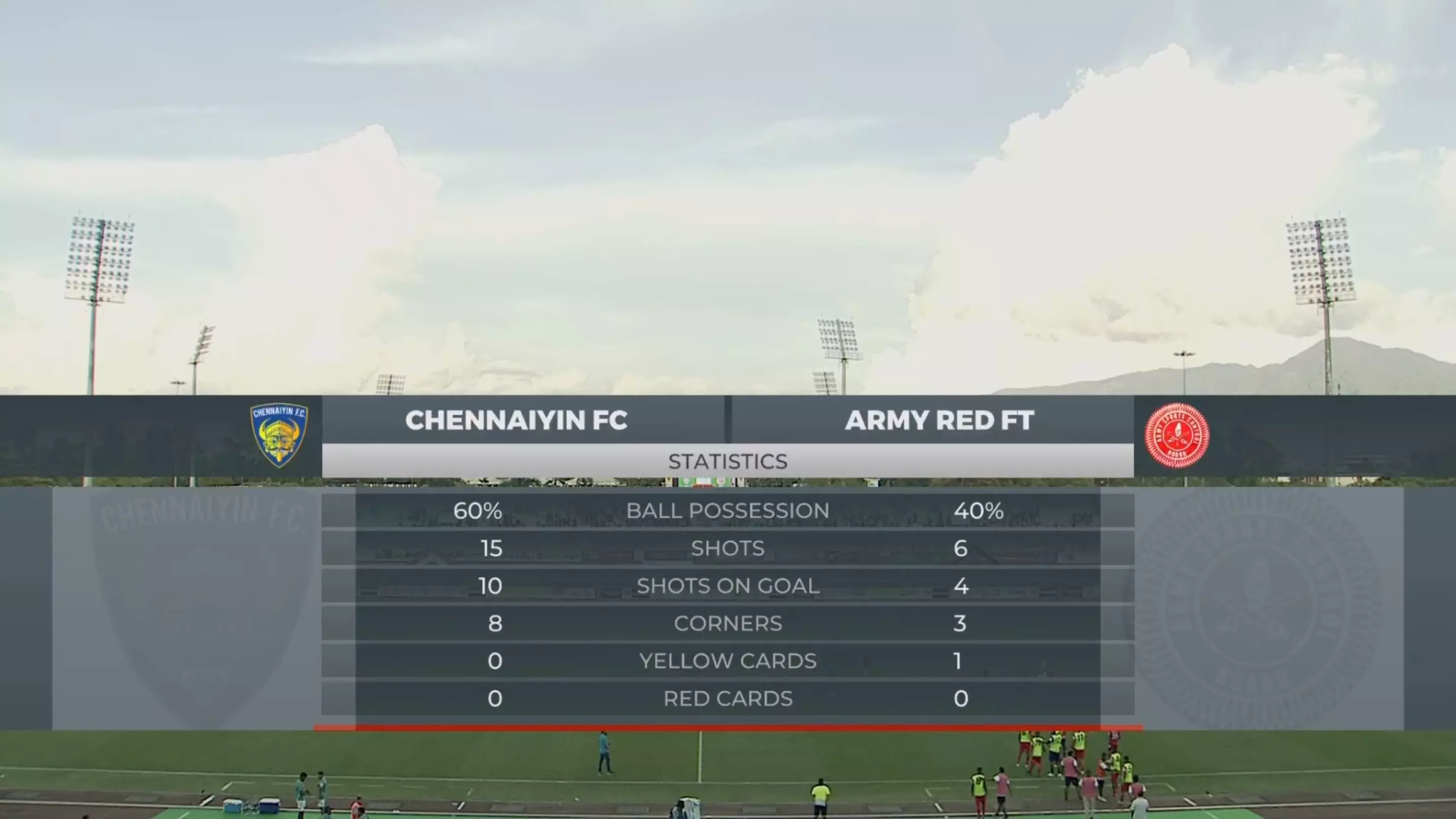 It was the Army side which took the lead thanks to Lethaolen Khongsai. However, his goal was cancelled out by Chennai's Julius Duker just before the 90th minute. Then, Edwin Vanspaul scored Chennaiyin's second of the game to hand them lead.