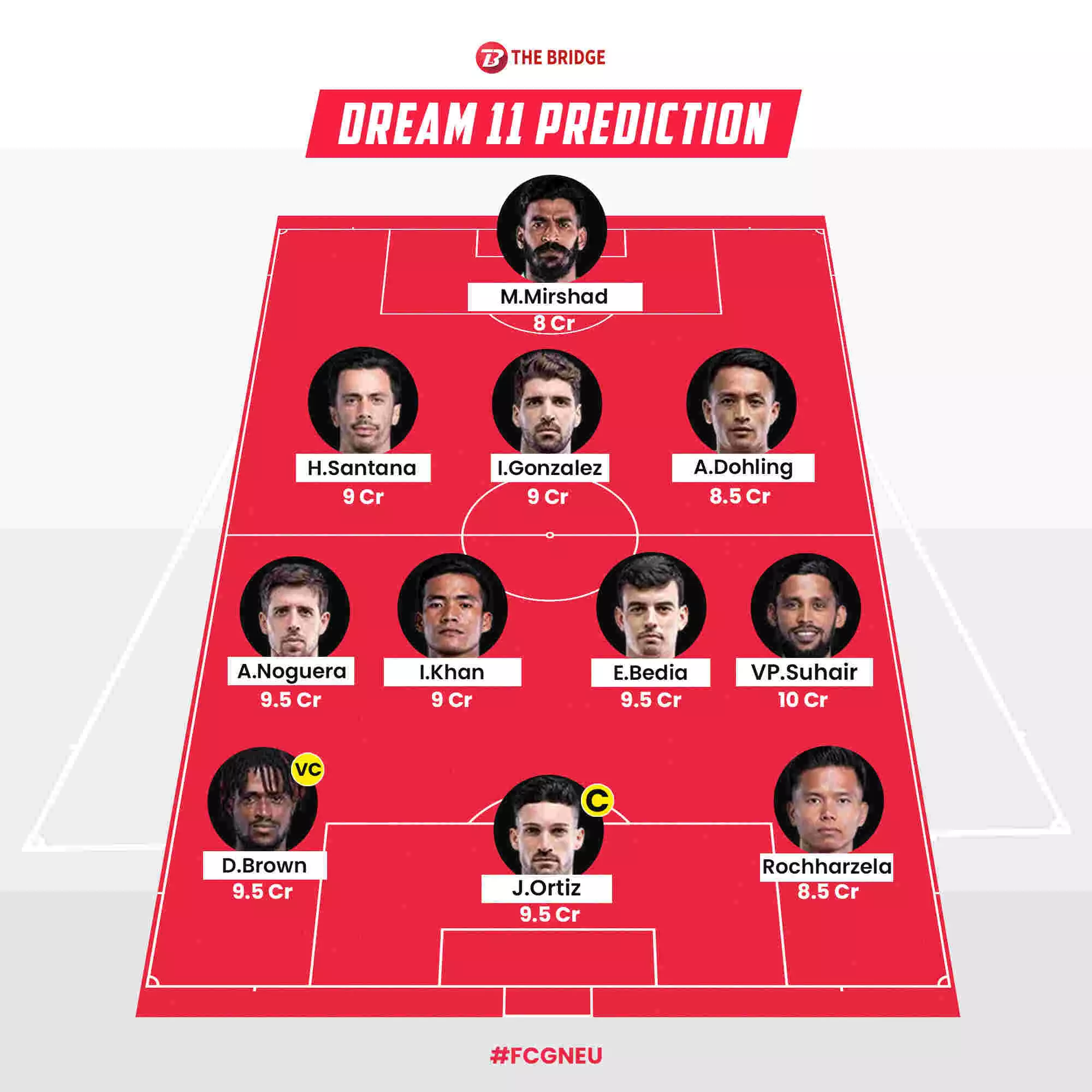 Dream11 tips and predictions for the ISL match between FC Goa and North East United FC