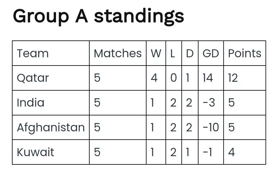 India's dream of playing in the FIFA World Cup 2026 has come to an end as they finish behind Qatar and Kuwait, who won 1-0 against Afghanistan thanks to a late goal.