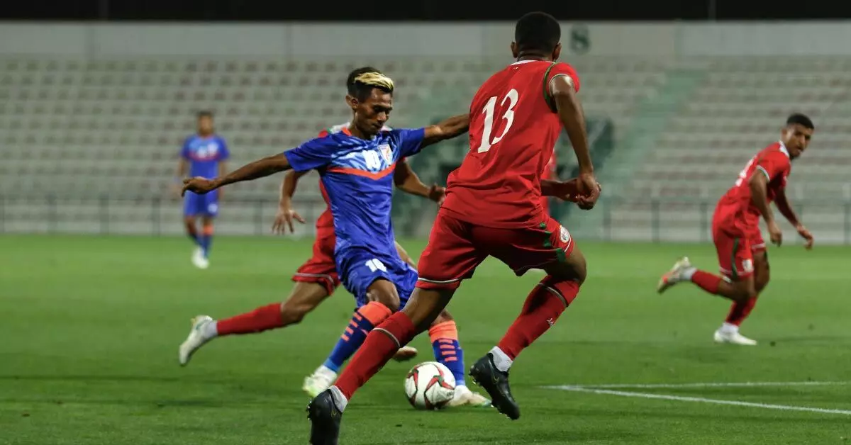 Debutant Bipin Singh in action during India vs Oman (Source: AIFF Media)