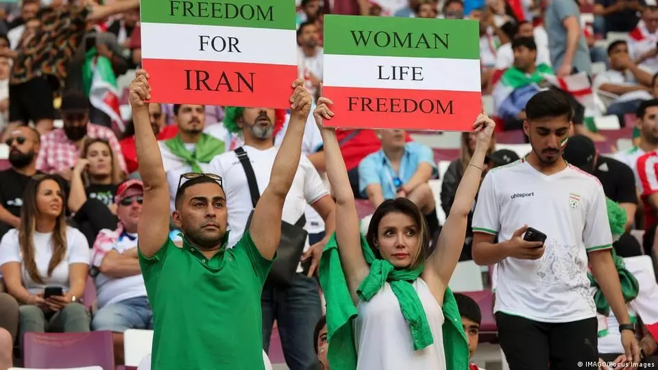 Some fans were stopped by stadium security from bringing in Persian pre-revolutionary flags to the match against Wales at the Ahmad Bin Ali Stadium. Others carrying such flags had them ripped from their hands by pro-government Iran fans, who also shouted insults at fans wearing T-shirts with the slogan of the protest movement gripping the country, "Woman, Life, Freedom."