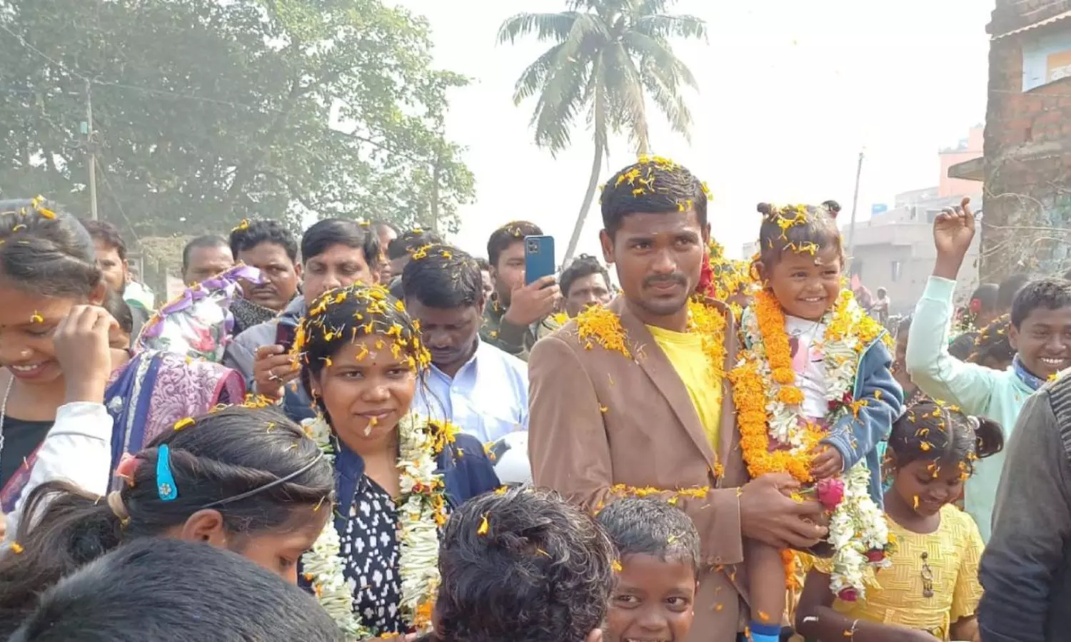 His mother, Tulsi Hansda, a contract farmer, was overwhelmed by the celebrations.