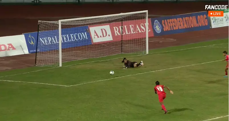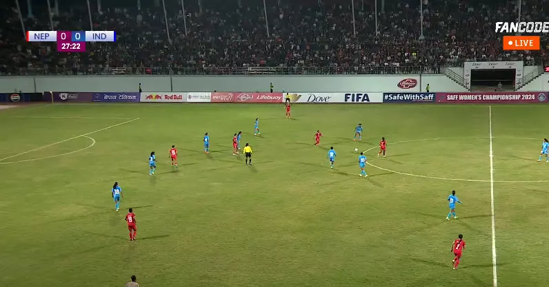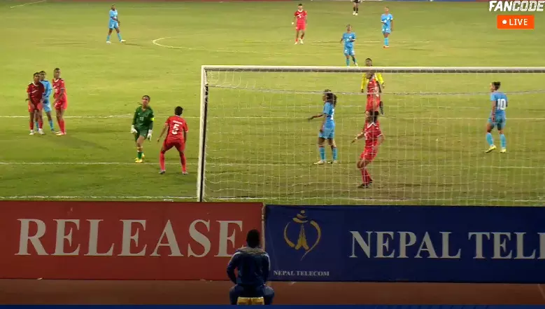 The stadium is filled to the brim and the fans are enjoying as both teams are playing end-to-end football. But so far Nepal had more clear cut chances.