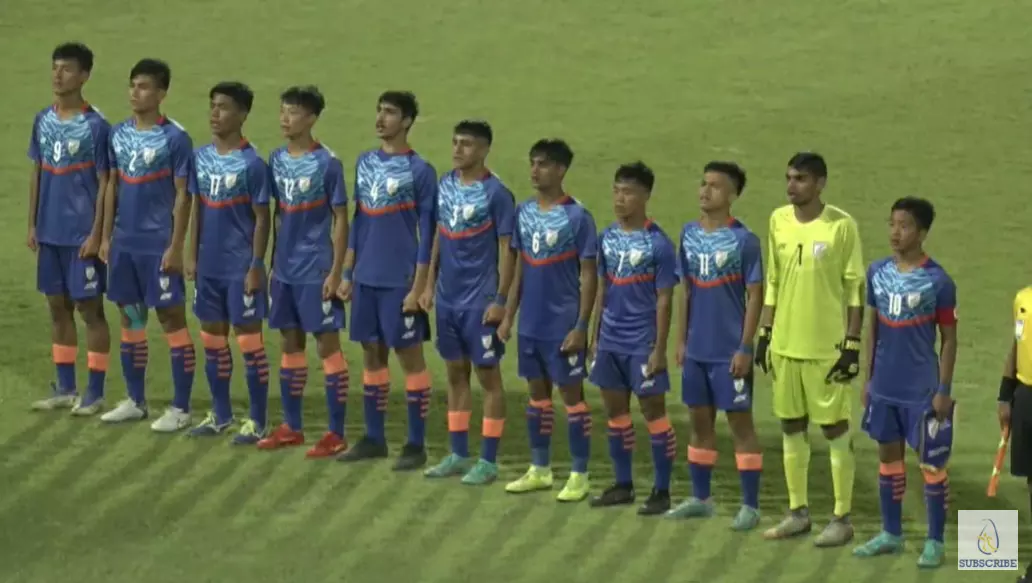 India U-17 team in the SAFF Championship 2022. (Screengrab: YouTube/ Football Sri Lanka TV)