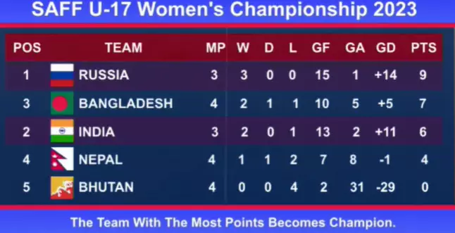 SAFF U17 Women's C'ship: Russia beat India to become champions-Highlights
