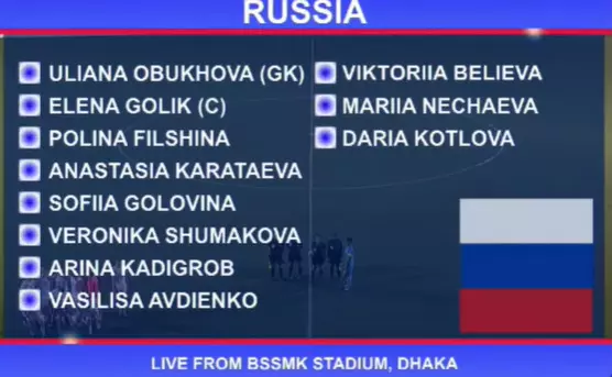 Just 4 minutes after opening the scoring, Russia have extended the lead. Indian captain Heena Khatun with a harsh challenge gifts the opposition a penalty.