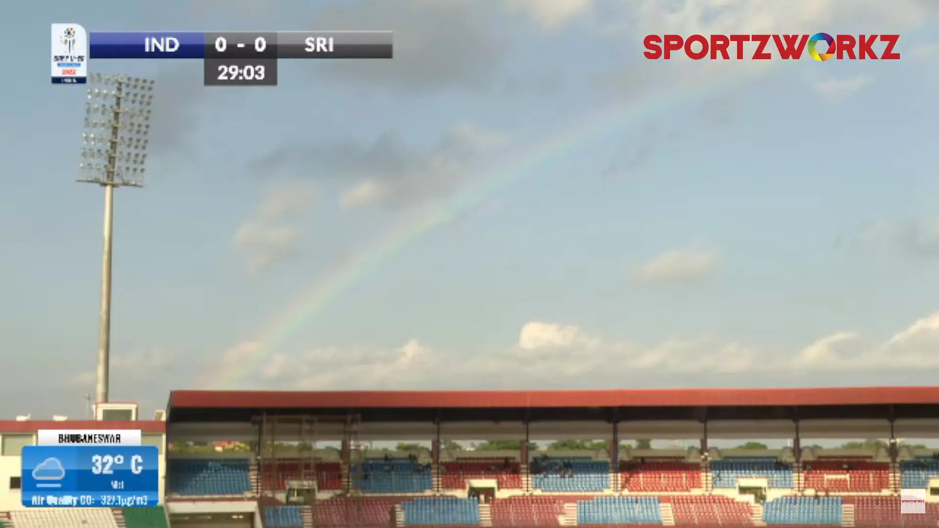 While the match gets halted due to injuries and fouls, here's a rainbow over the Kalinga Stadium!