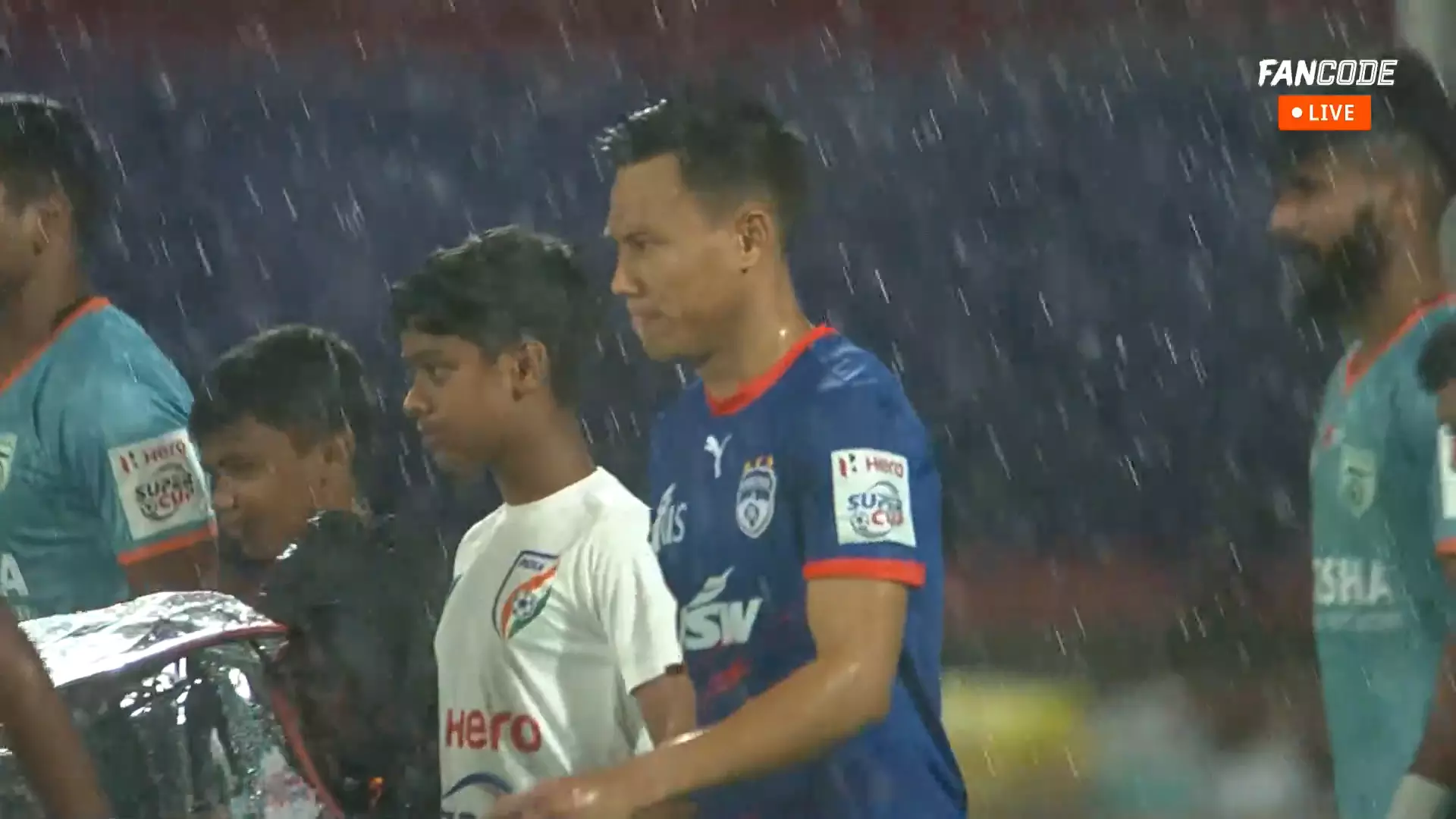 It's pouring at the EMS Stadium in Kozhikode, Kerala.