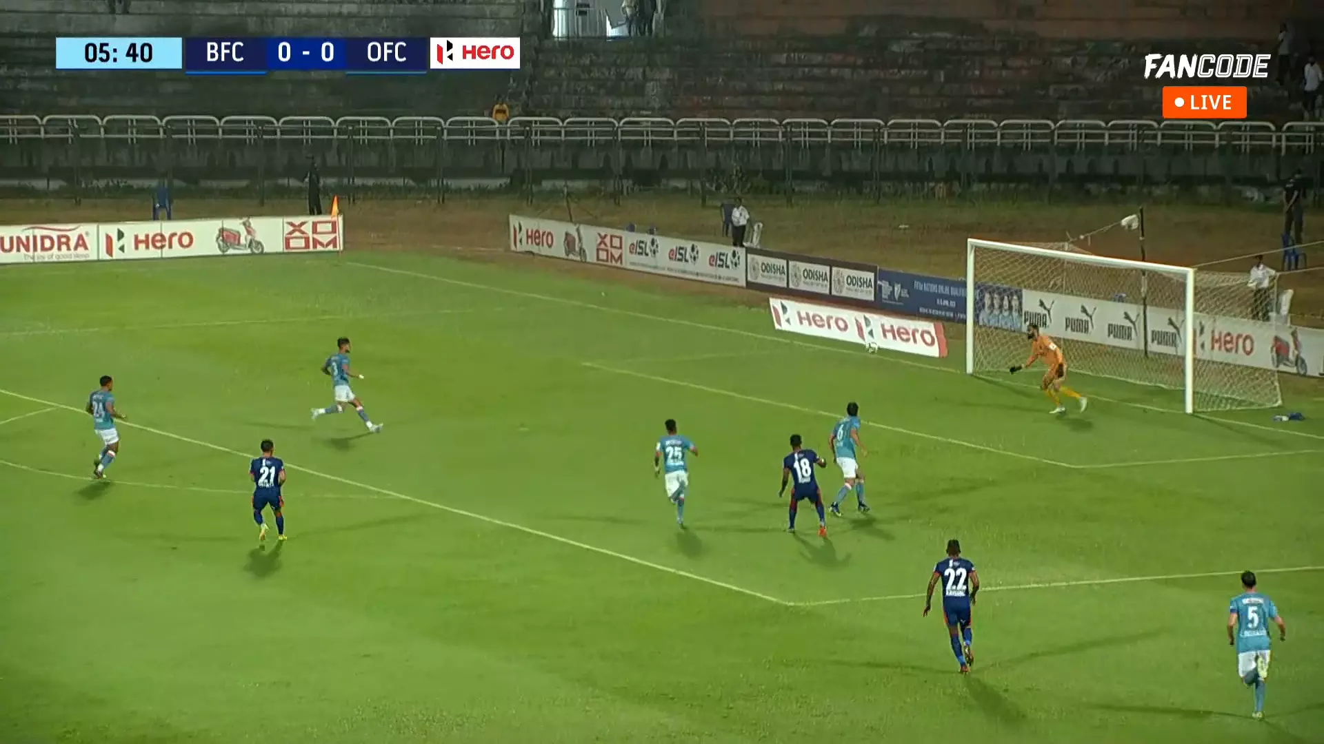 Odisha did get a couple of corners some time back, but to no avail. Bengaluru are back with their possession based football, as they put in corners in to find someone inside the box.