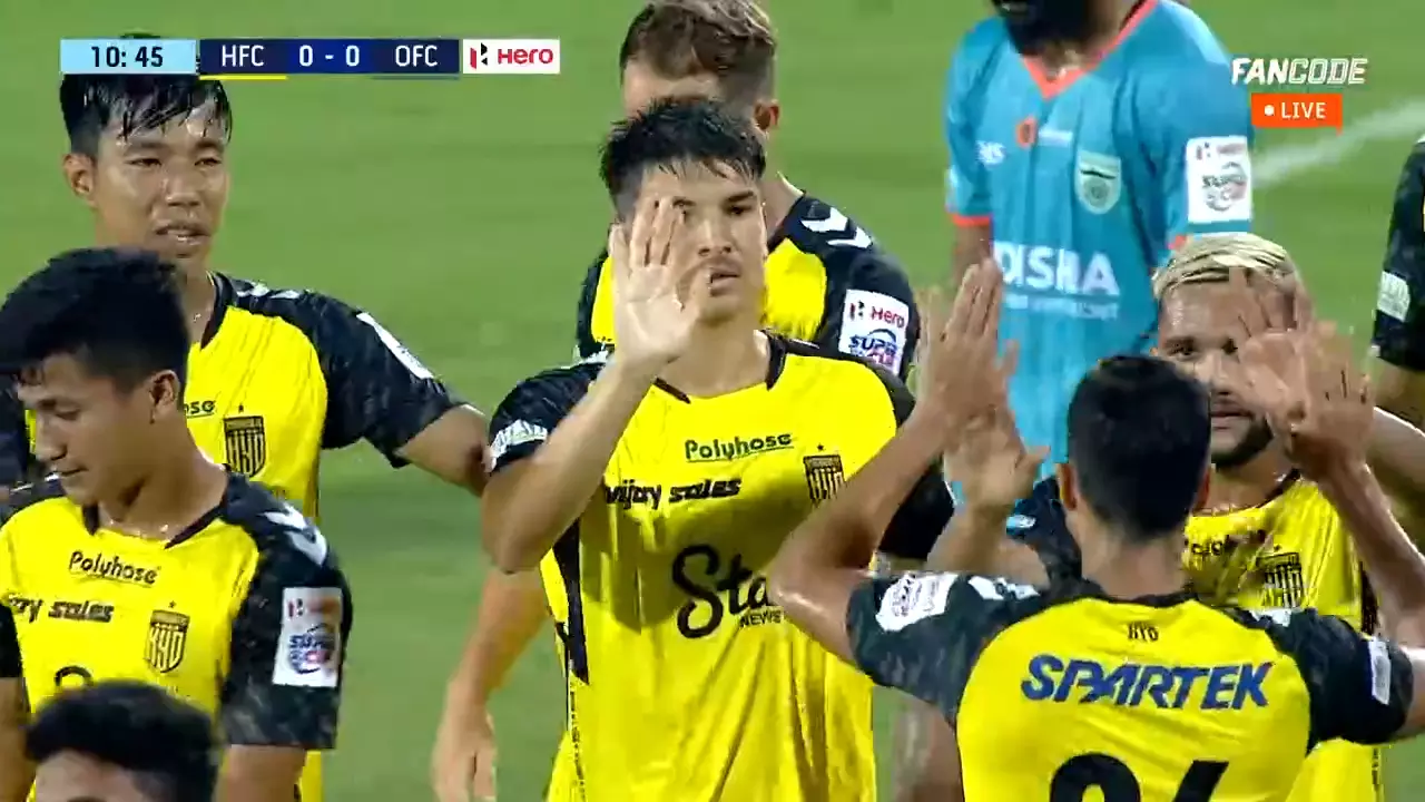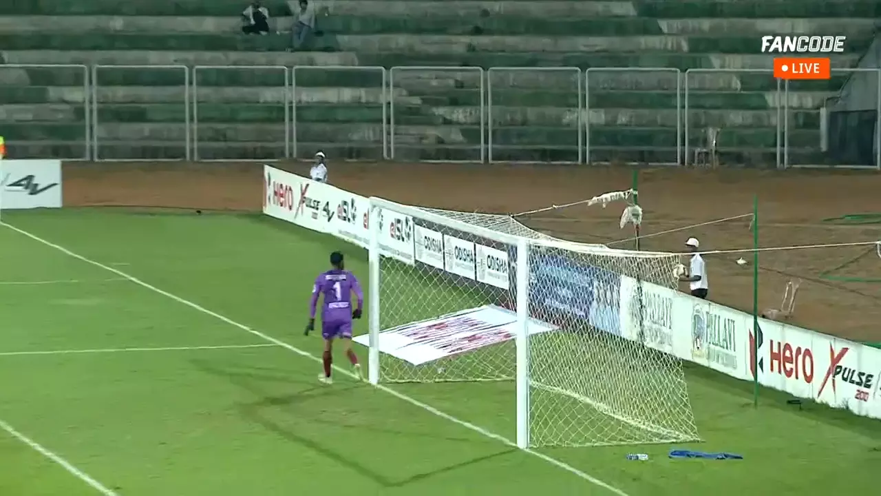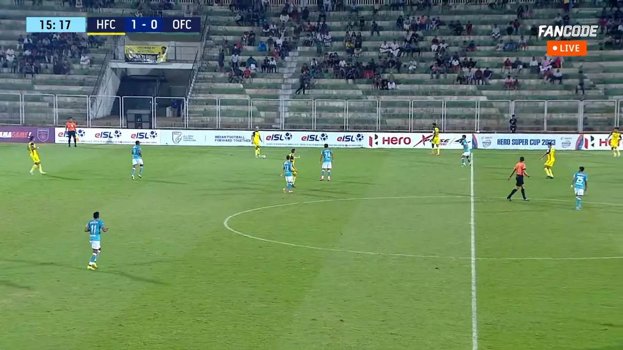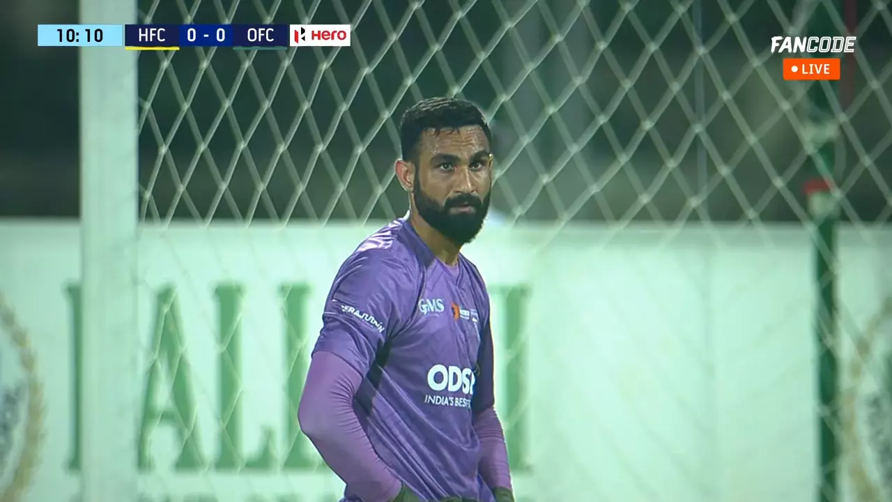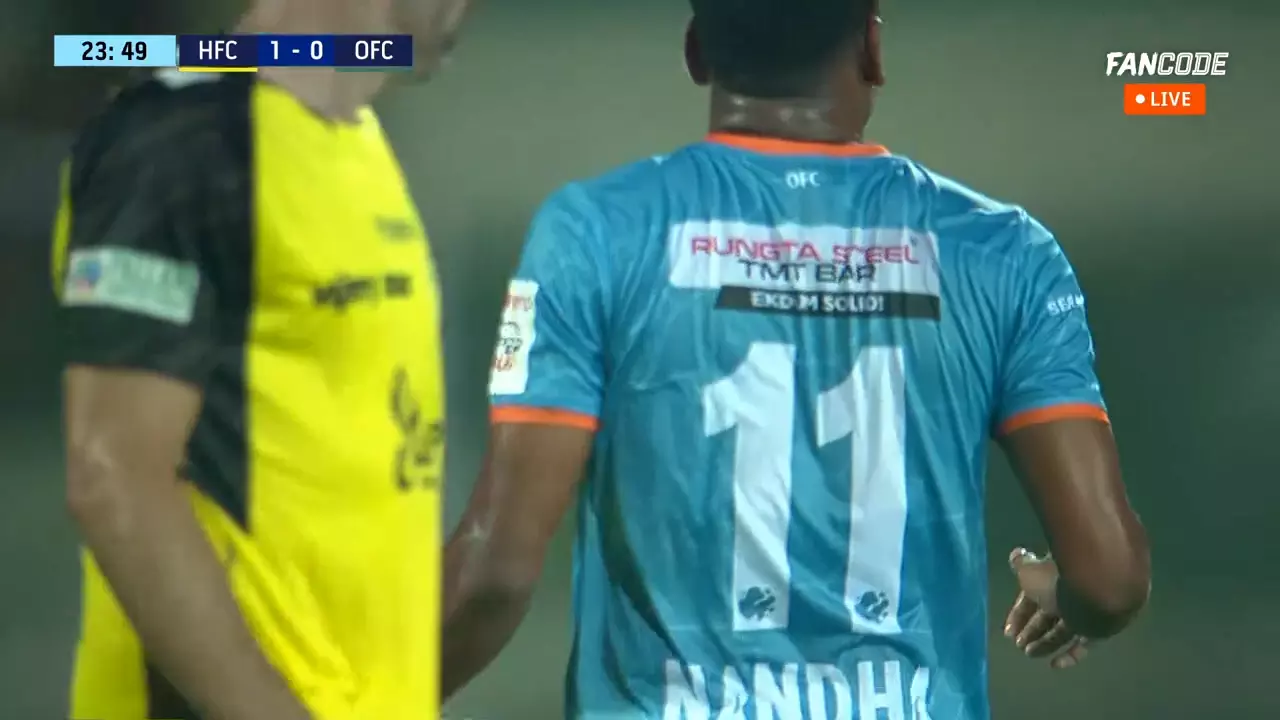 Nikhil Poojary does brilliantly to keep Nandha Kumar under pressure as the Odisha striker skies the shot and OFC's moves are coming for no results.