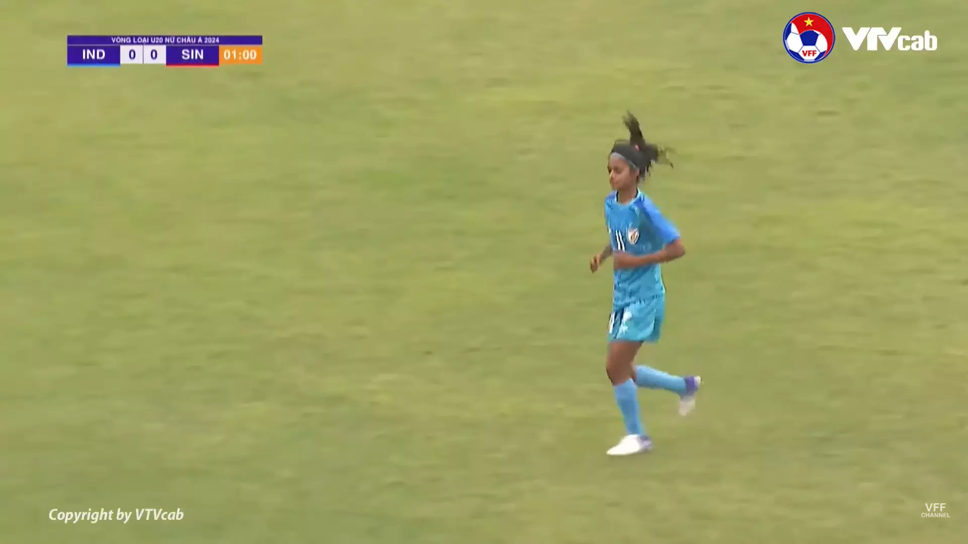 The Indian team is slick in passing here and is attacking the Singapore box regularly. Anita Chanu misses a golden chance as she strikes one straight at goalkeeper and another India cross is deflected for corner.