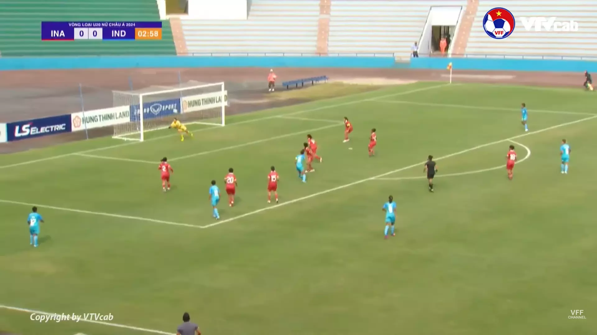 The Indian attackers get into the action as a ball is played for the skipper Apurna Narzary from the left wing but Indonesian GK comes to collect it before Apurna.