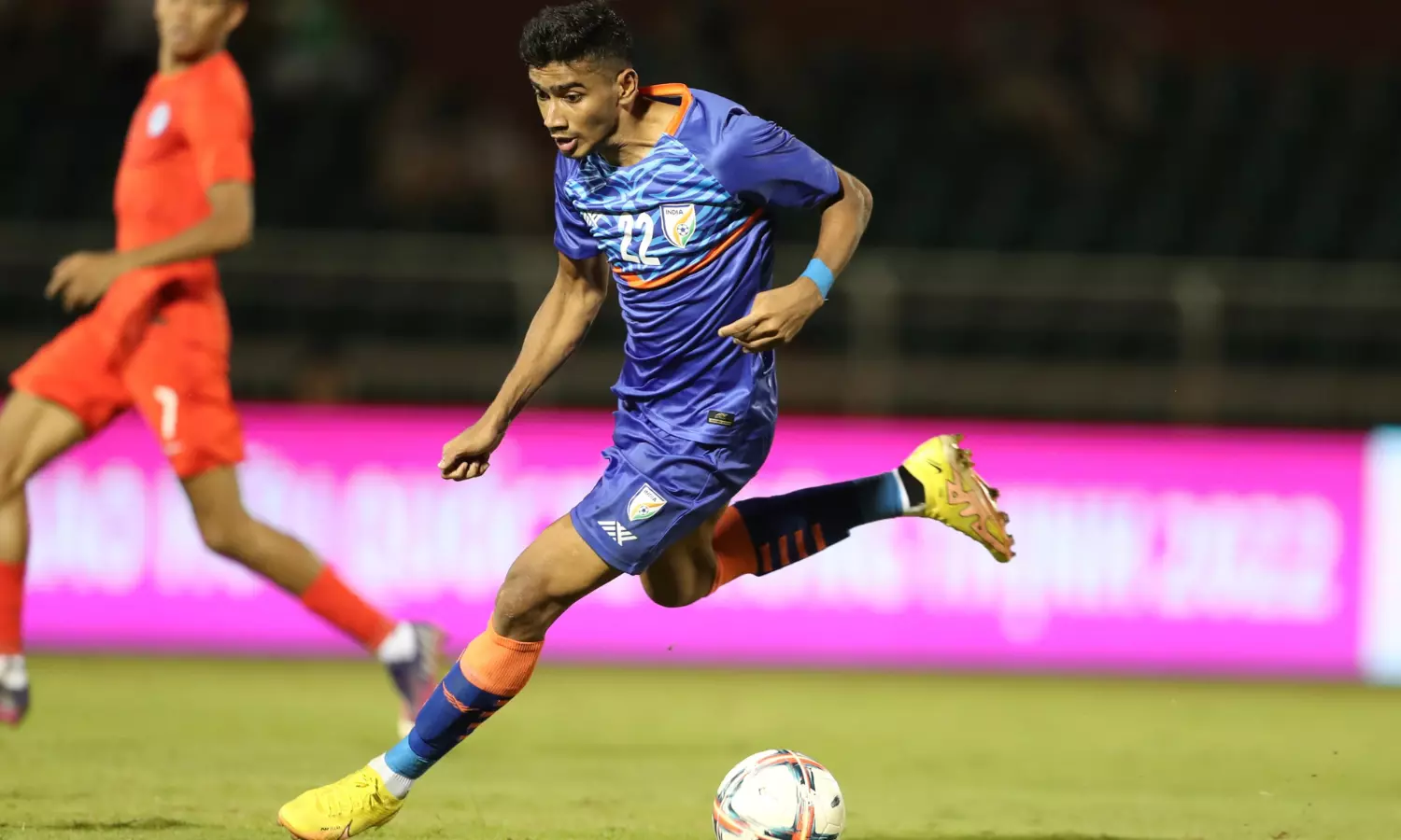 Ashqiue scored the only goal for India against Singapore in the Hung Thinh tournament. (Credits- Indian Football Twitter)