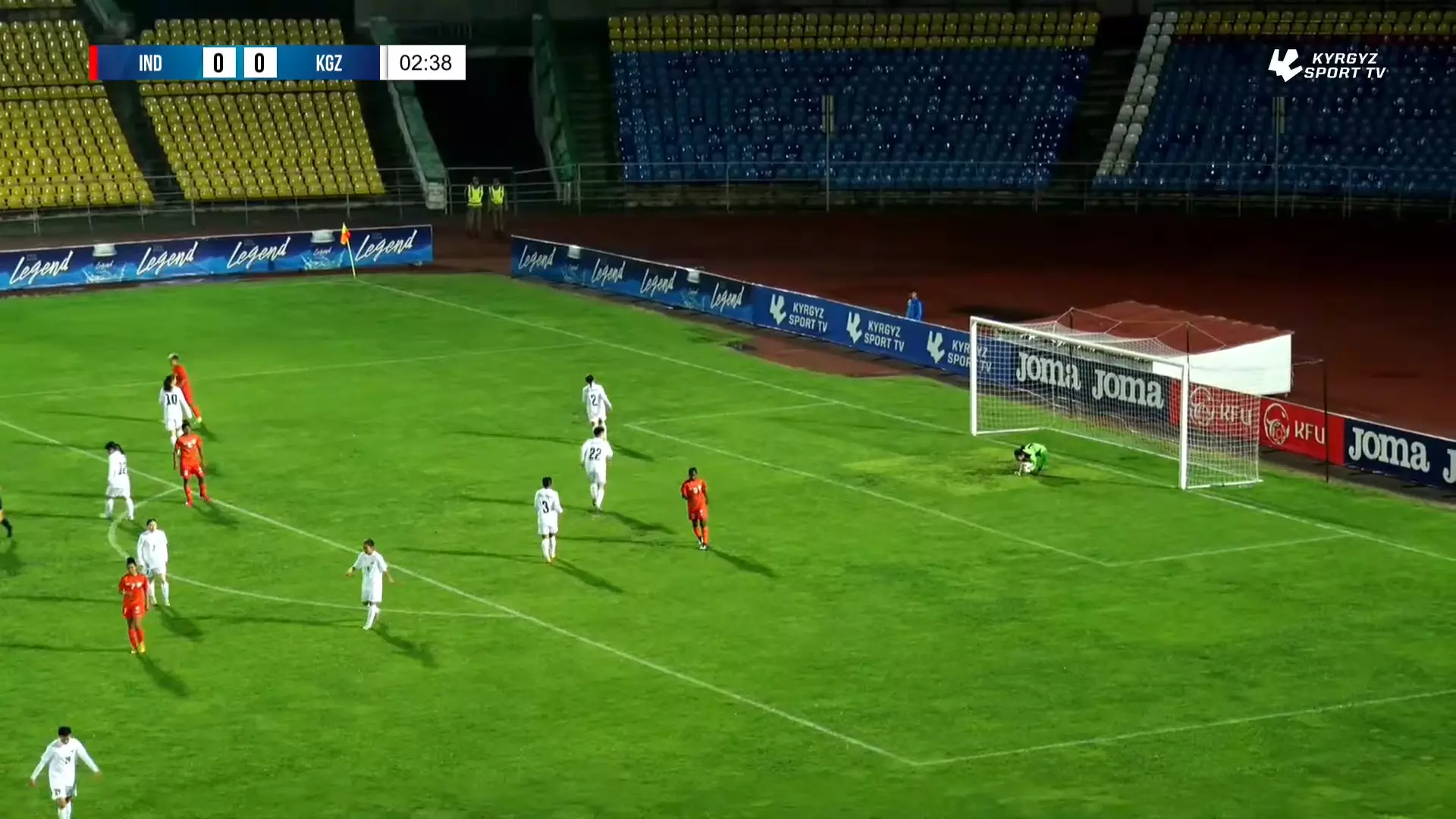 Brilliant solo run from Sandhiya, skipping past the Kyrgyz backline, as she calmly passes the ball past the goalie to give India the lead. The constant attack on the Kyrgyz box finally pays off!