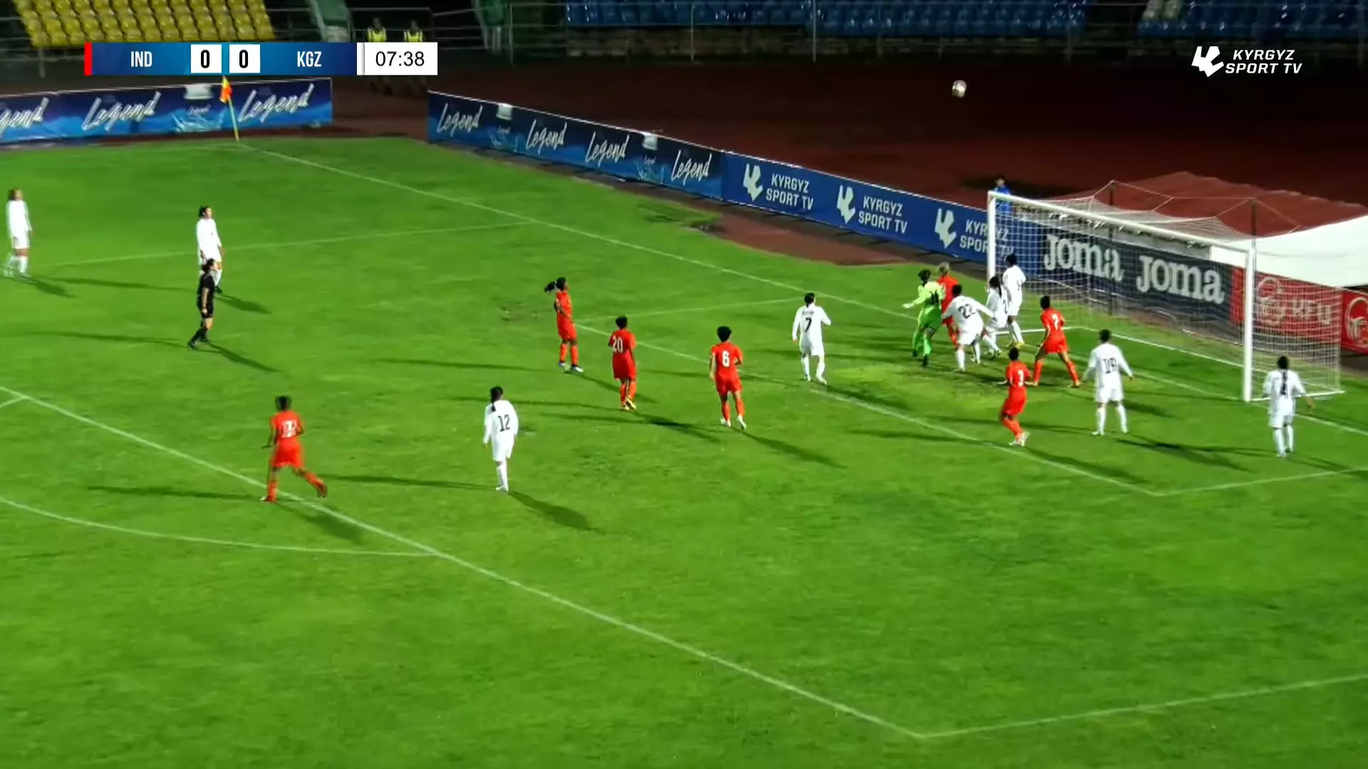 Ashalata Devi puts one free-kick in the box which is mishandled by Kyrgyz goalkeeper and it falls to Anju who miscues the shot.