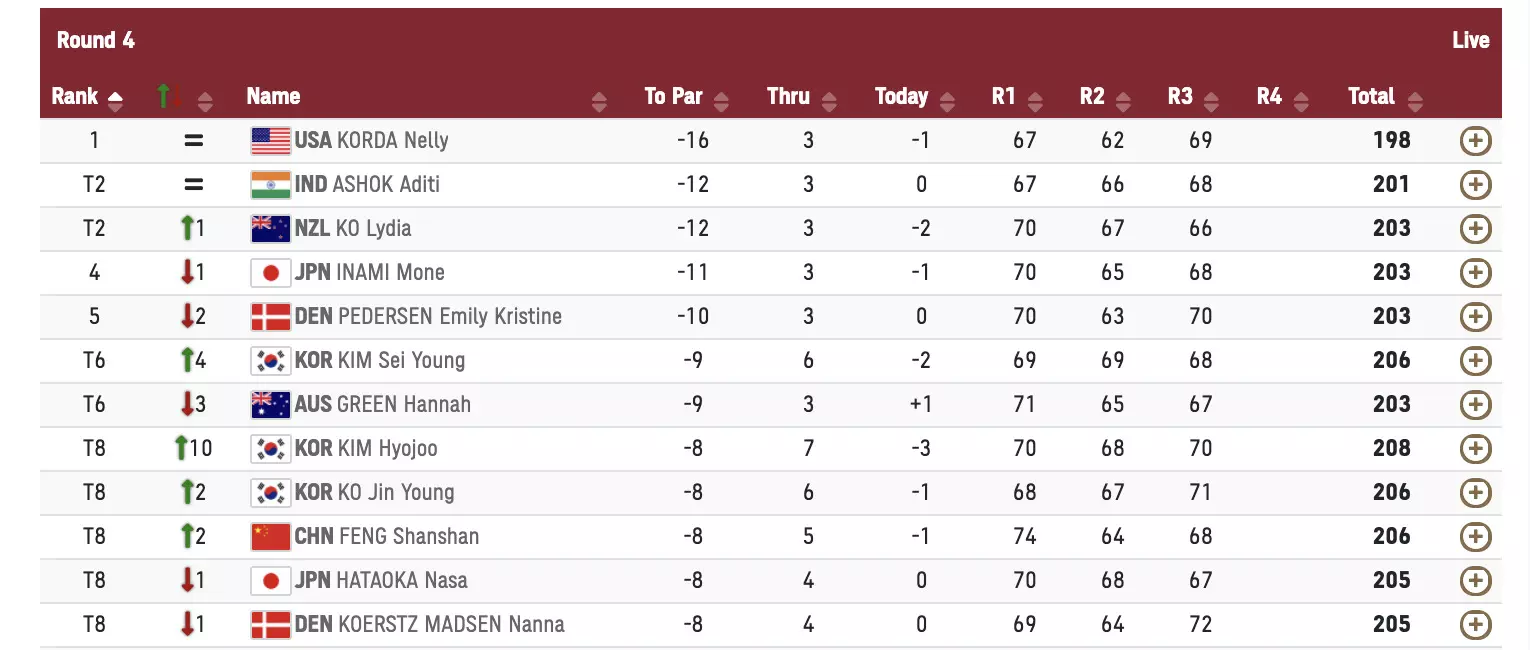Aditi Ashok is in pole position to win a medal as we head into the final day of the Women's Individual Round.