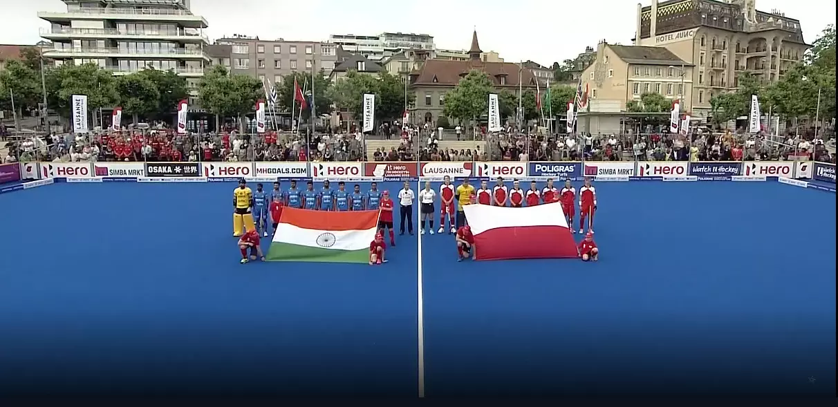 Both the teams are out on the field and it's time for the National Anthems. India's Jana Gana Mana followed by Poland is Not Lost Yet.