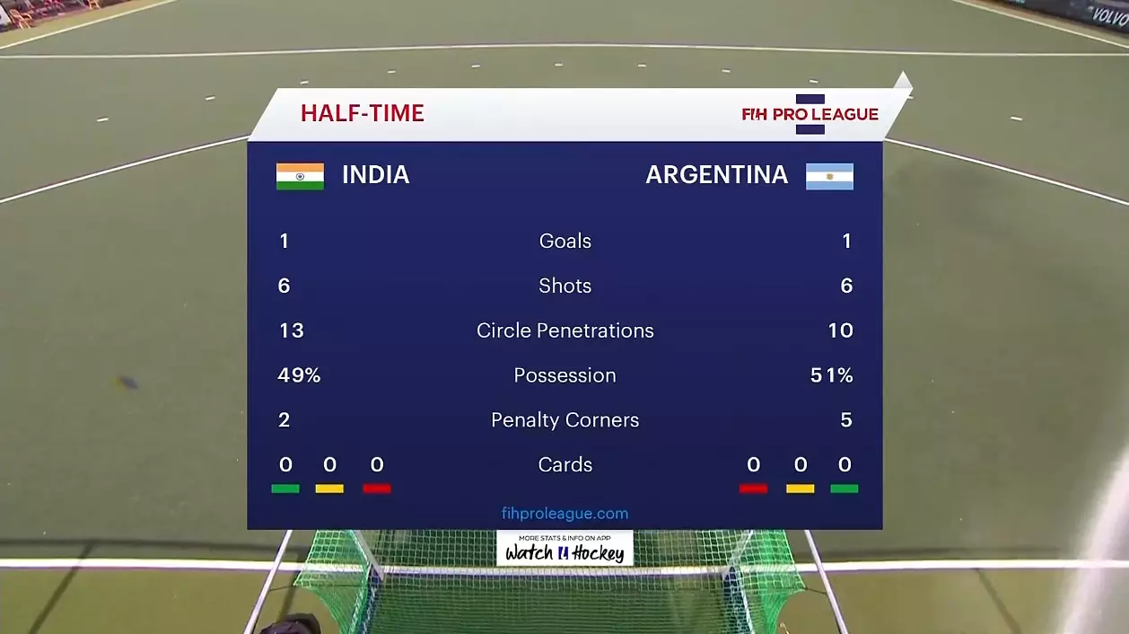 India has 13 circle penetrations as 10 compared to Argentina. India has been a better side going in the half-time with better chances and better attack.