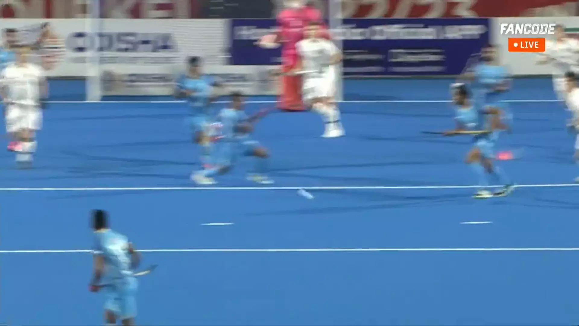 India defends four PCs in a row and then counter-attacks led by Gurjant Singh but Shamsher fails to capitalize on the layoff.