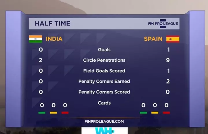 India managed just two circle penetrations in the first half, compared to Spain’s nine (five in Q1 and four in Q2), underlining Spain’s attacking dominance.