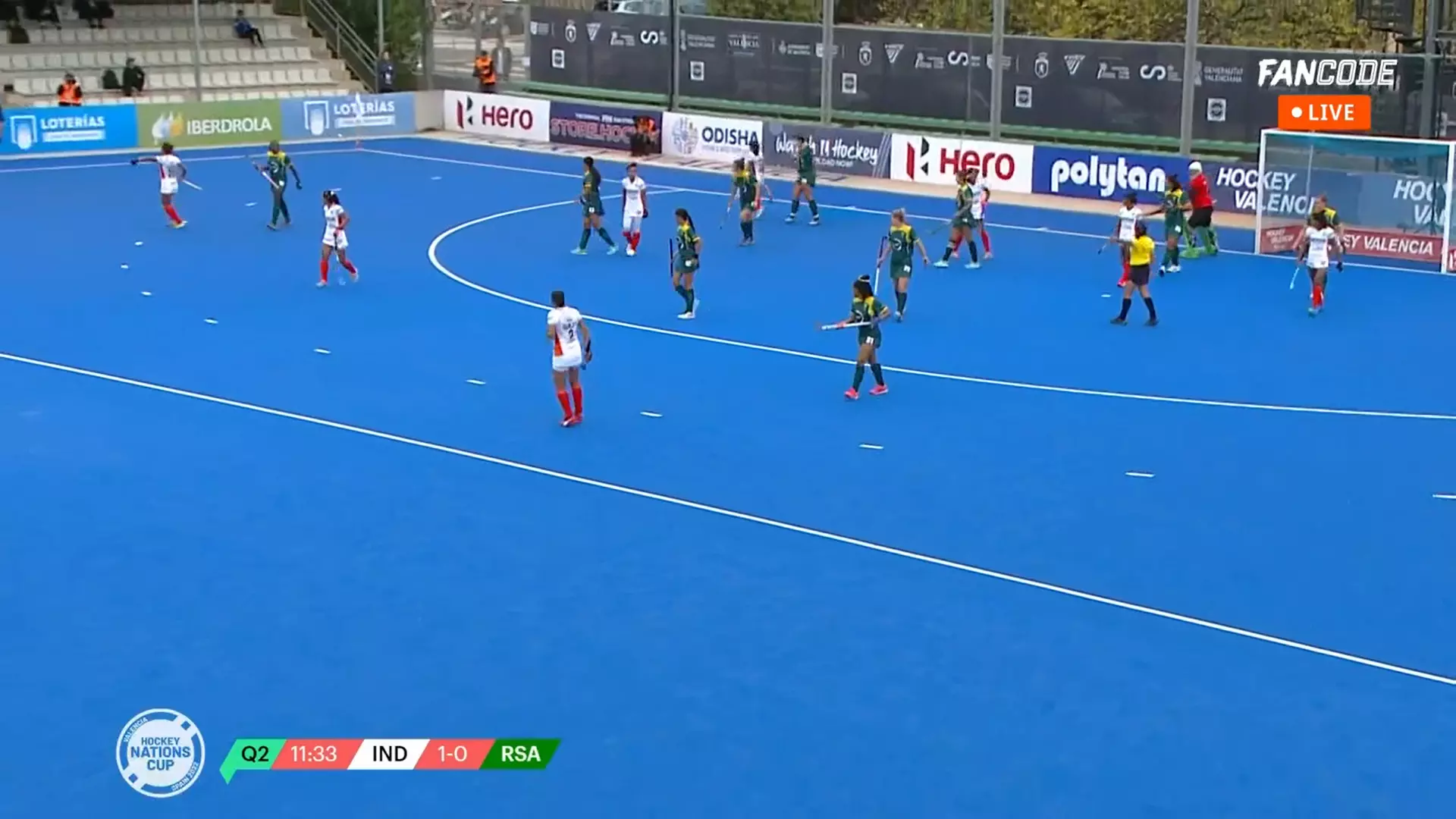 India are just too good right now! Interceptions, dribbles, and more! South Africa are playing a lot of mis-passes which India are taking advantage of.