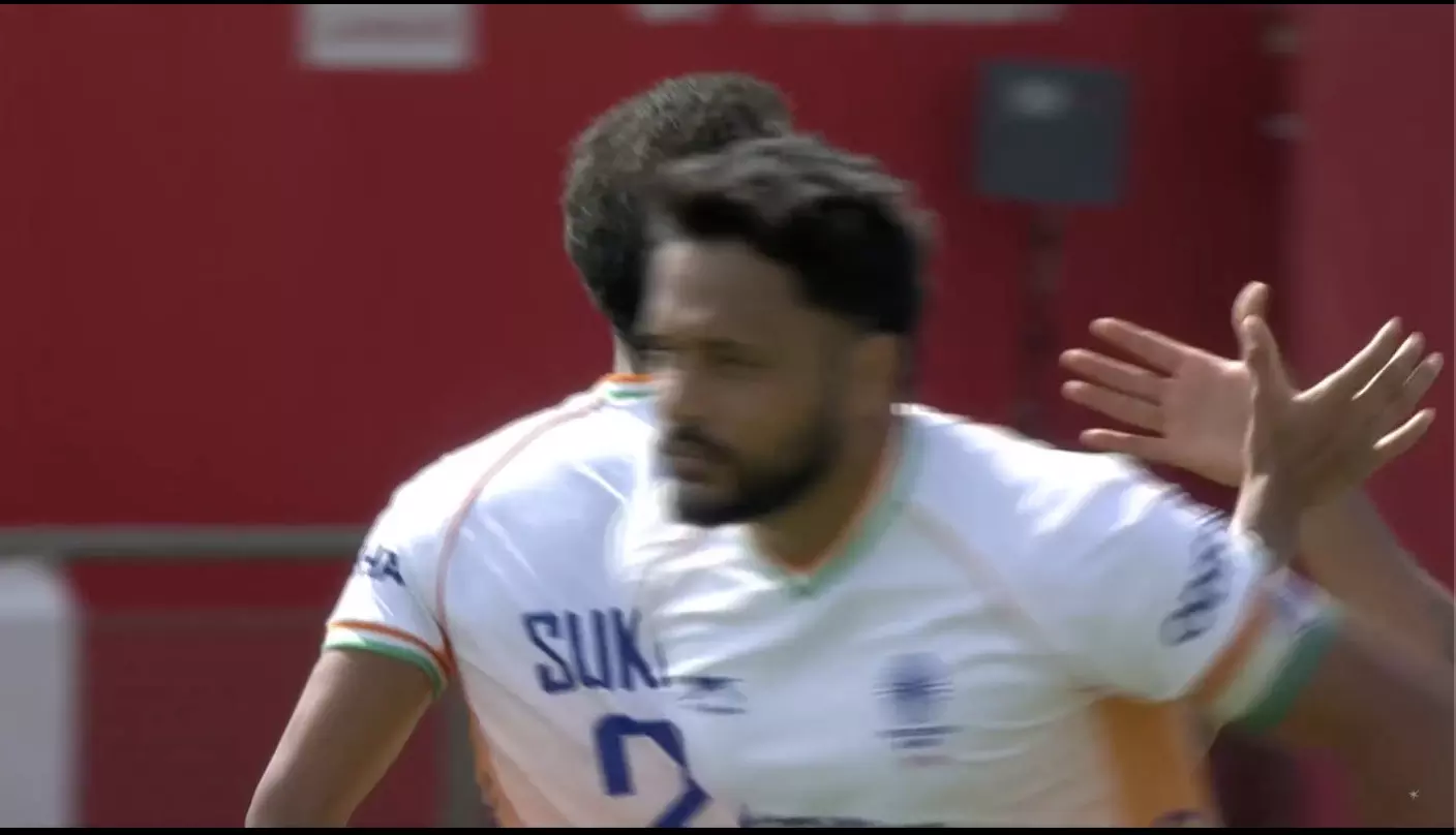 Another penalty corner for India — and this time, India makes no mistake. Sukhjeet Singh steps up and rifles it home with trademark power and precision. What a way to announce his return! India are back in it.