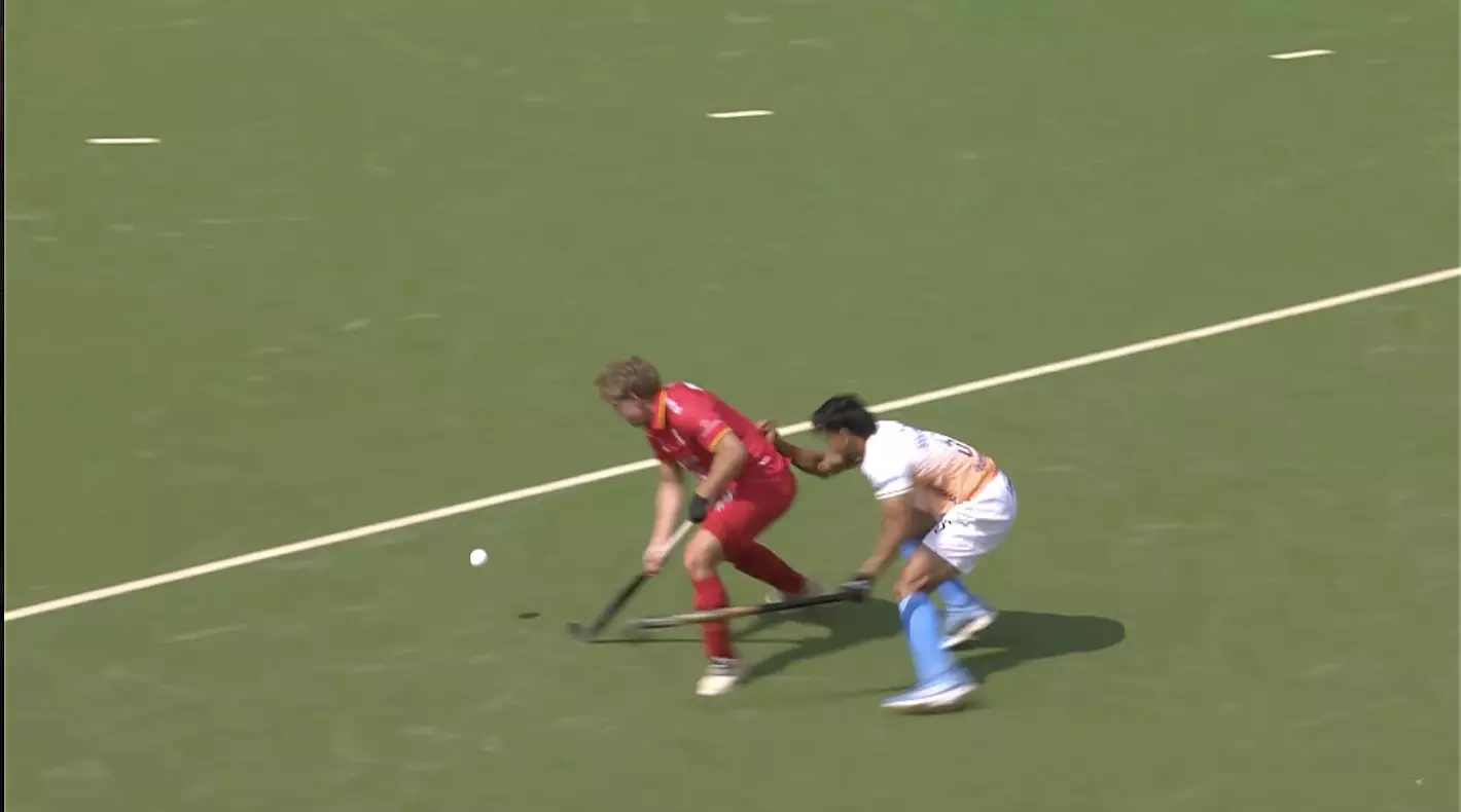 India is showing more urgency in the second quarter, trying to move the ball into dangerous areas. A free hit taken by Rajinder Singh finds its way into the circle, but there’s no final touch or clear chance created. Belgium holds firm.