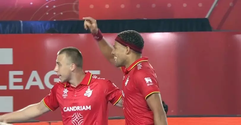 Pawan, despite stepping out to cut the angle, is beaten. Belgium have drawn first blood.