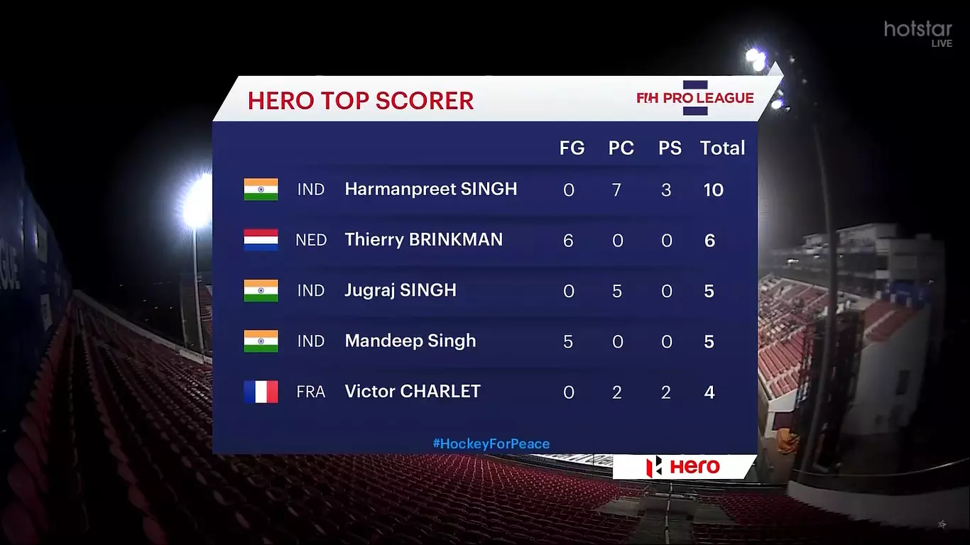 Harmanpreet singh is the top goalscrorer of FIH Men Hockey Pro League 2021-22 season with 10 goals